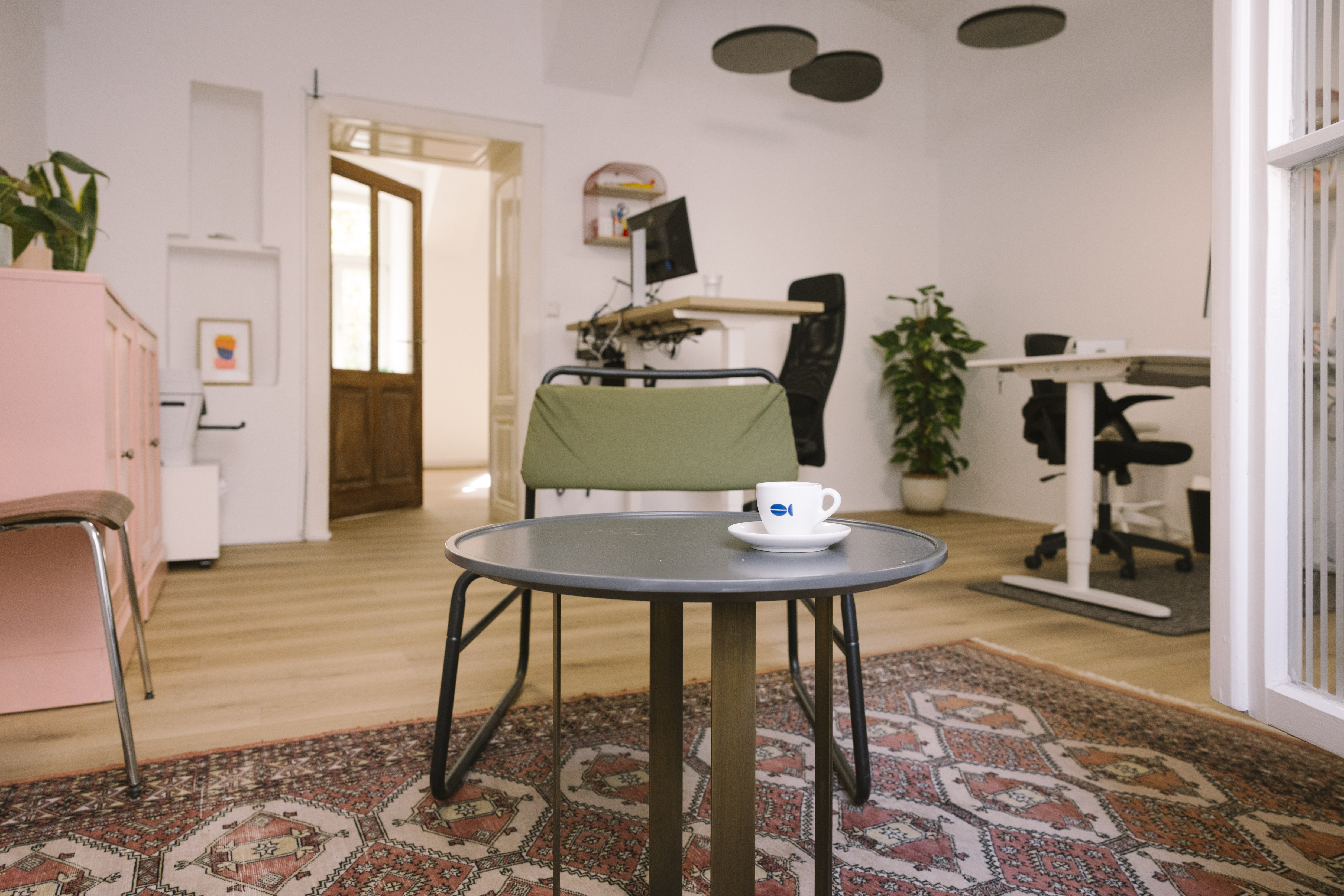 Im Preis enthalten: W-Lan, Drucker, Mitbenützung einer voll ausgestatten Küche, Kaffee, Mitbenützung unserer cuten Terrasse und 2-3 sehr nette Kolleginnen.