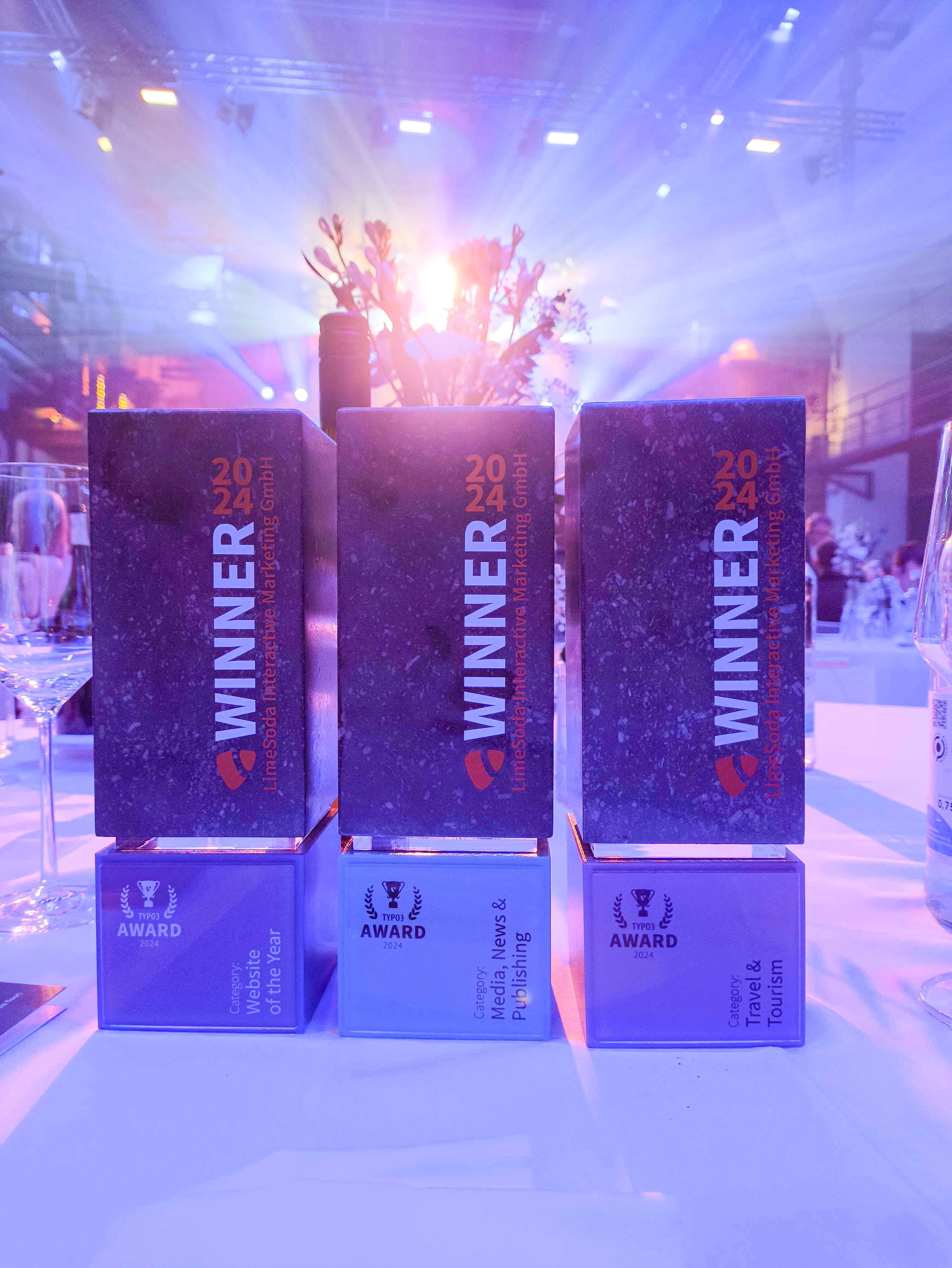 Große Freude bei LIMESODA: Die Agentur sichert sich einzige gleich drei Awards inklusive dem Gesamtsieg „Website of the Year“. Prämiert wurde die Website Vienna City Card mit dem Sieg in der Kategorie „Travel & Tourism“ sowie Gesamtsieg als „Website of the Year“. Weiters das Portal FirmenABC mit dem Sieg in der Kategorie „News, Media & Publishing“.