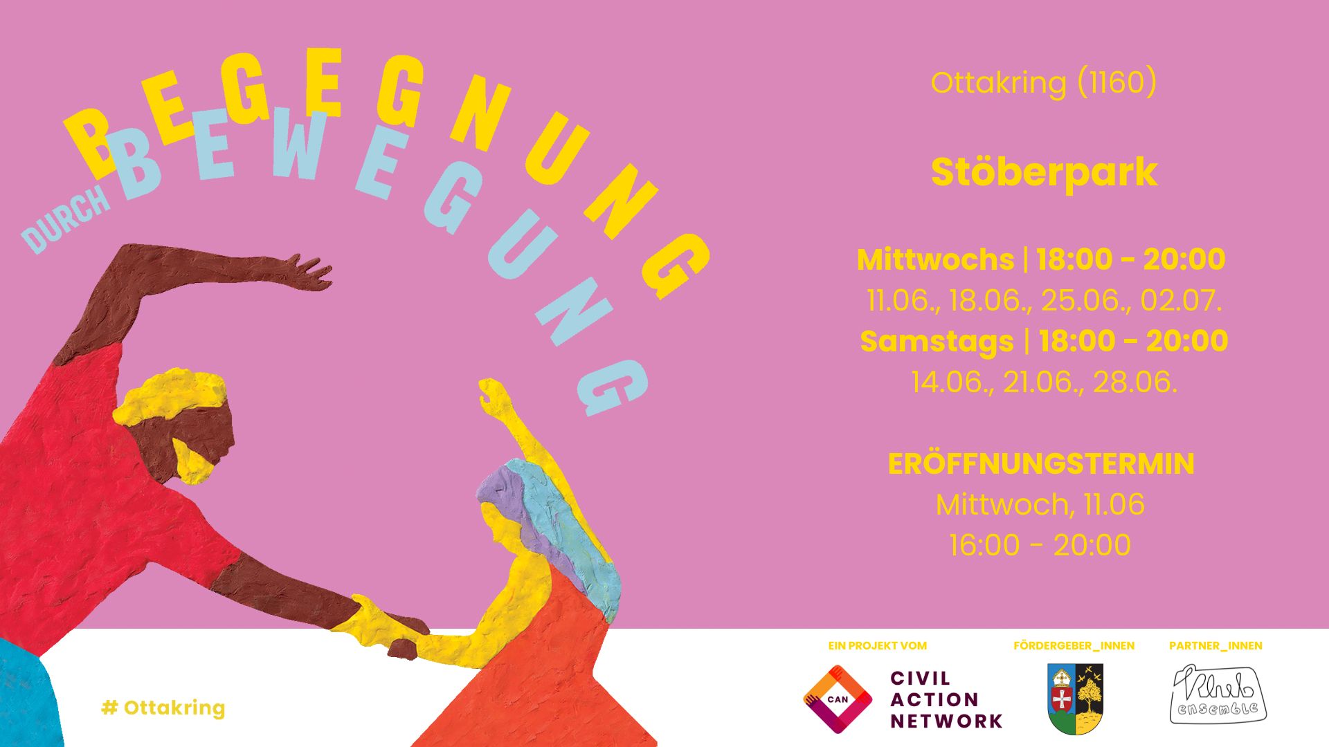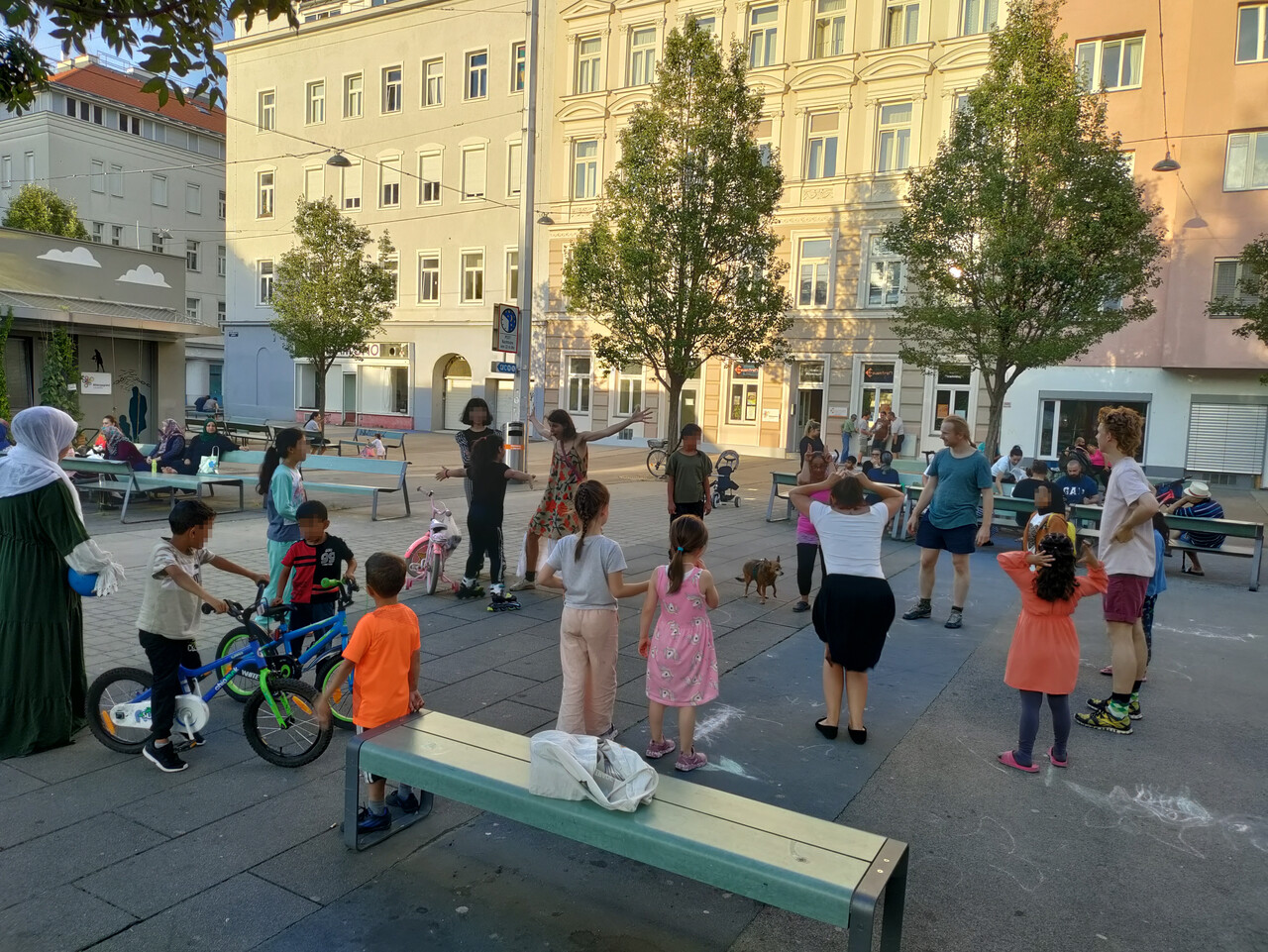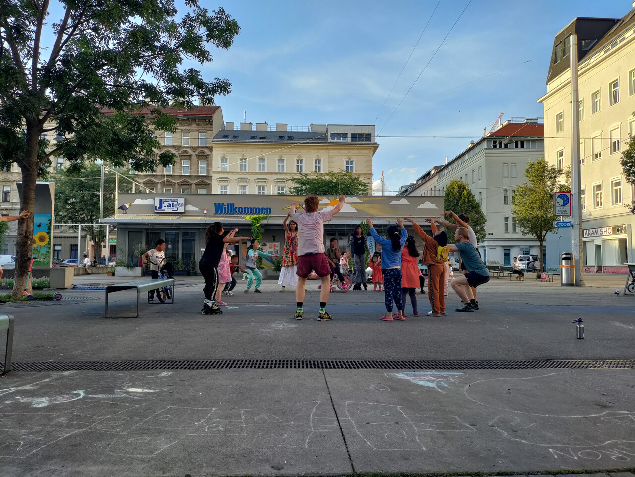 BEGEGNUNG DURCH BEWEGUNG schafft Raum für neue Begegnungen und Erfahrungen. Wir laden ein, gemeinsam neue Beziehungen zu erkunden:zur Nachbarschaft, zum eigenen Körper, zur Bewegung, zu Menschen, zur Stadt, zu Klängen und zu allem, was uns umgibt.Bewegung ist eine nonverbale Sprache, durch die wir ohne Hürden, unabhängig von Herkunft oder Sprache miteinander in Verbindung treten können.
