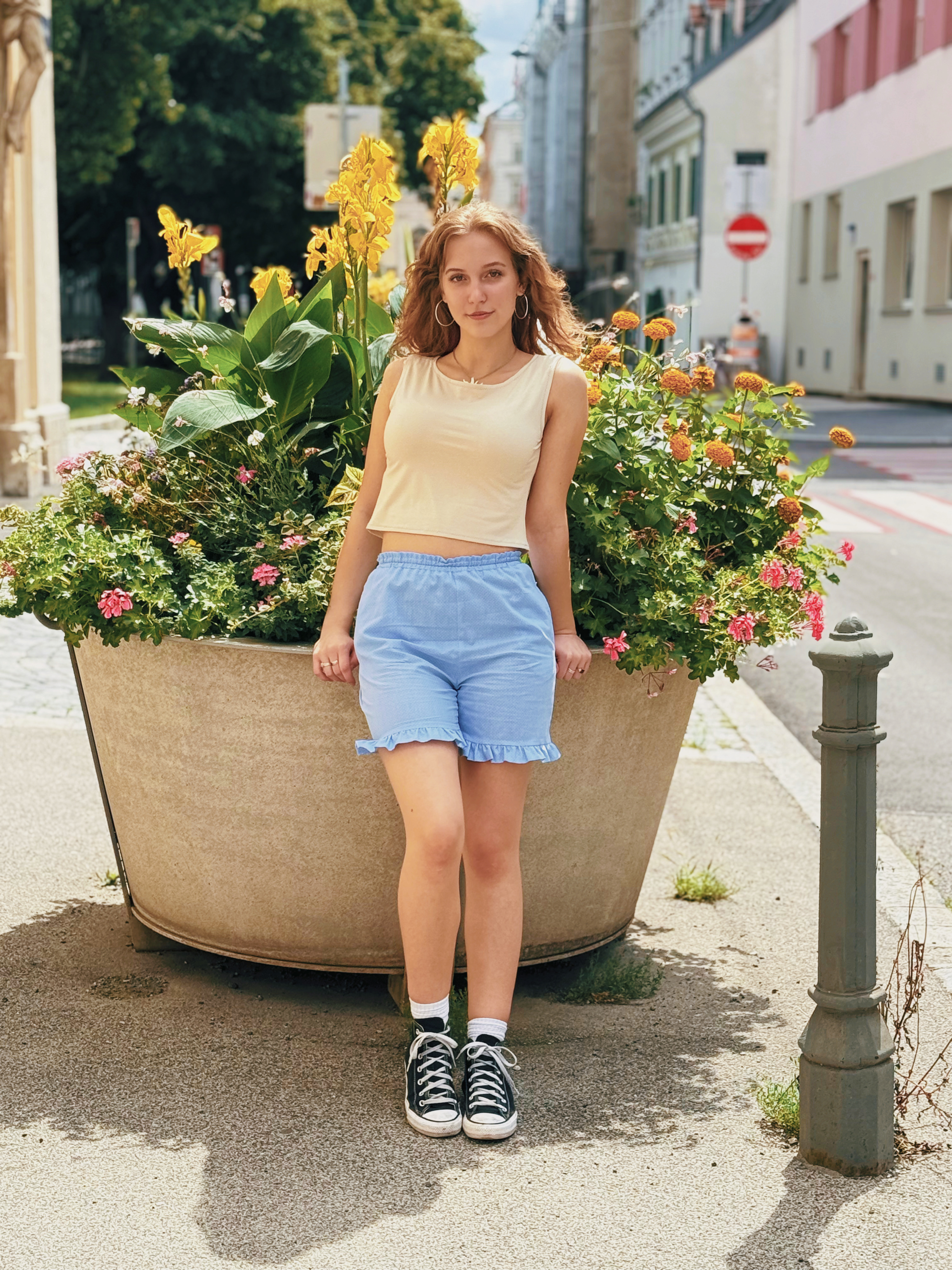 Ob kurz oder lang – du kannst den Schnitt kreativ anpassen und so gestalten, wie es dir gefällt. Der Fokus liegt auf einfachen Techniken, ideal für Einsteiger:innen – aber auch mit Spielraum für alle, die schon ein bisschen Näherfahrung mitbringen.