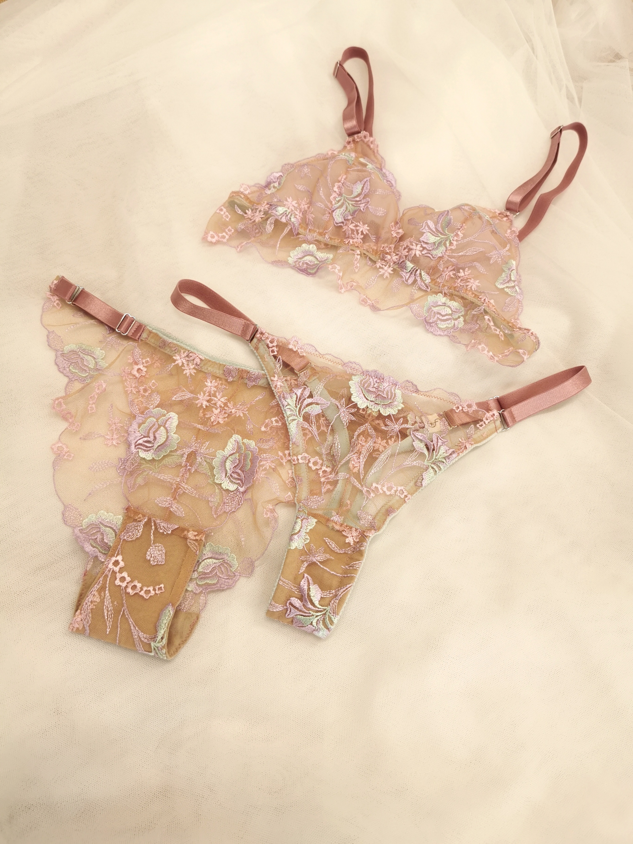 Zusammensetzen von Triangel-Bralette, Slip und String