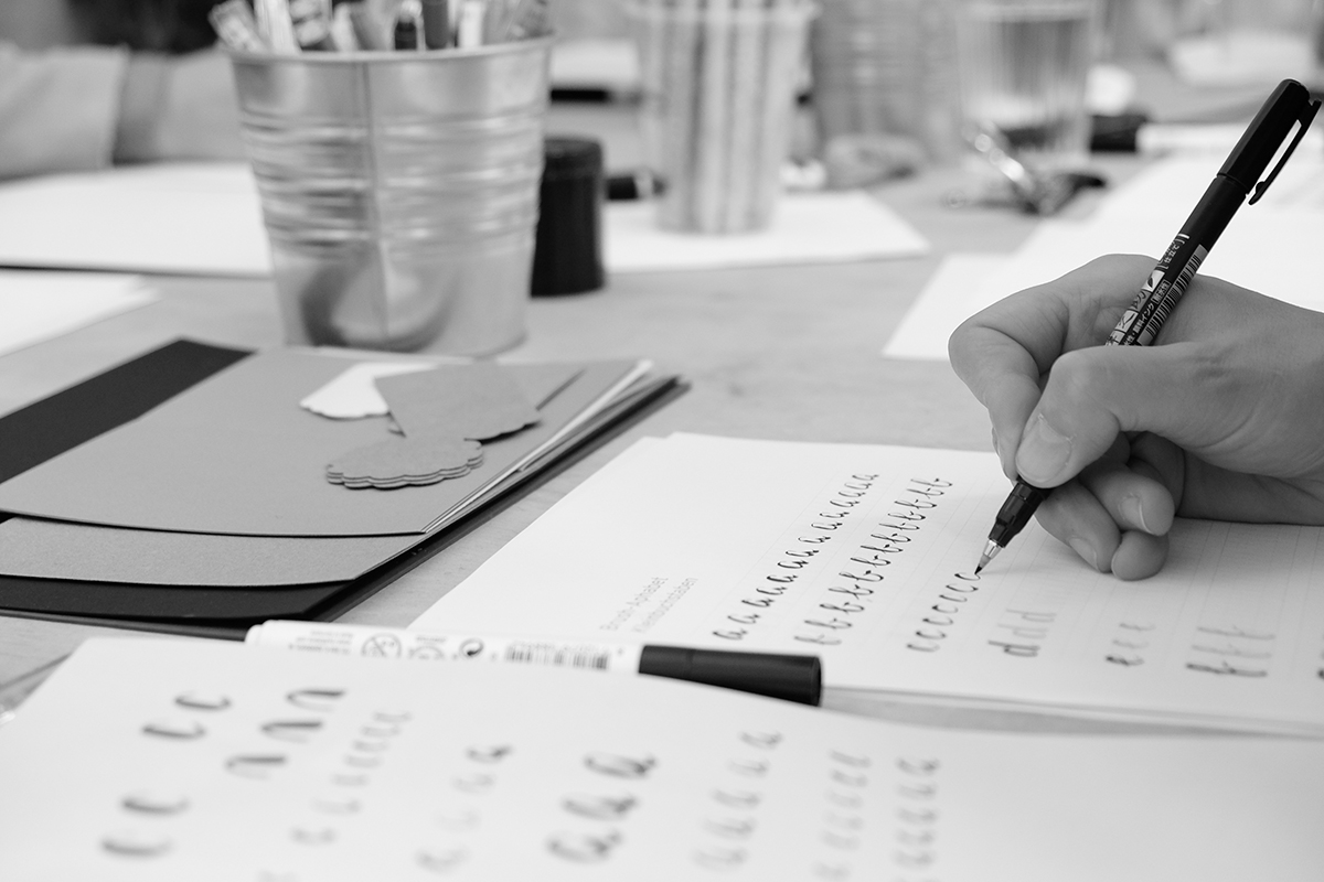 In diesem Workshop zeigen wir, wie du dich dem Werkzeug Brush Pen annäherst, geben dir eine Einführung in die verwendeten Materialien und lernst die Grundlagen des Brush Letterings. Anhand von Übungen lernst du zuerst die einzelnen Pinselstriche und dann sämtliche Kleinbuchstaben. Am Ende des Kurses kannst du dein eigenes Karten-Set mit deiner liebsten weihnachtlichen Liedstrophe oder Sprüchen gestalten. Sämtliche Materialen werden dir vor Ort zur Verfügung gestellt.