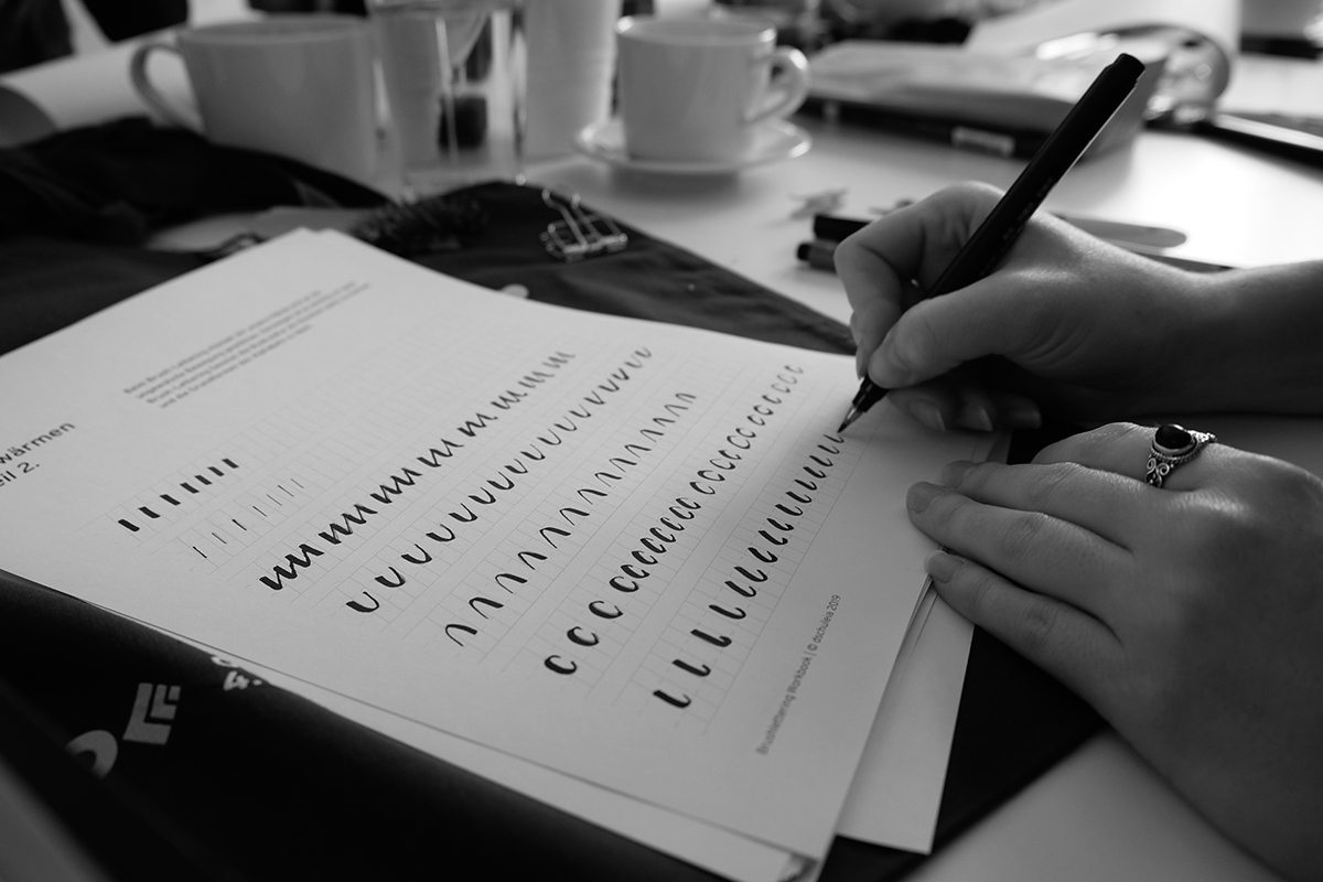 - Material-Kit plus Workbook zum Thema Brush Lettering. Vor Ort in gedruckter Form und nach dem Workshop in digitaler Version als PDF per E-Mail.