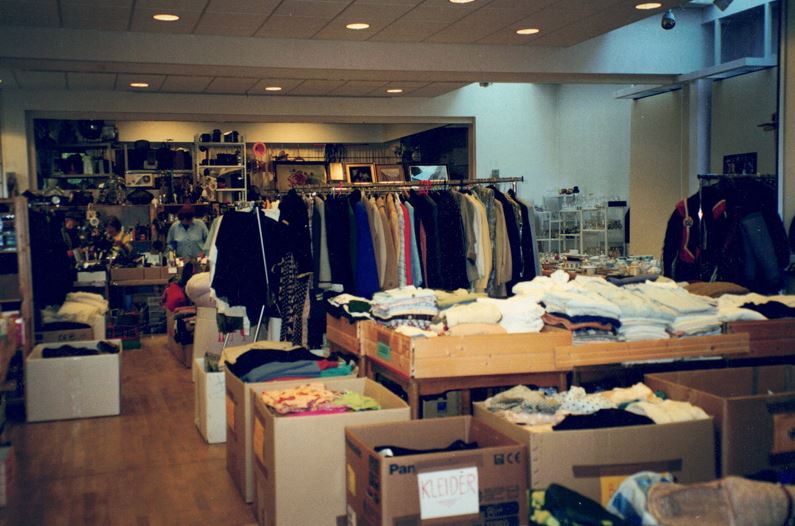 Es erwarten Sie Kleidung, Schuhe, Taschen, Koffer, Gürtel, Geschirr, Bücher, Kindersachen und ein Buffet mit Speis und Trank.