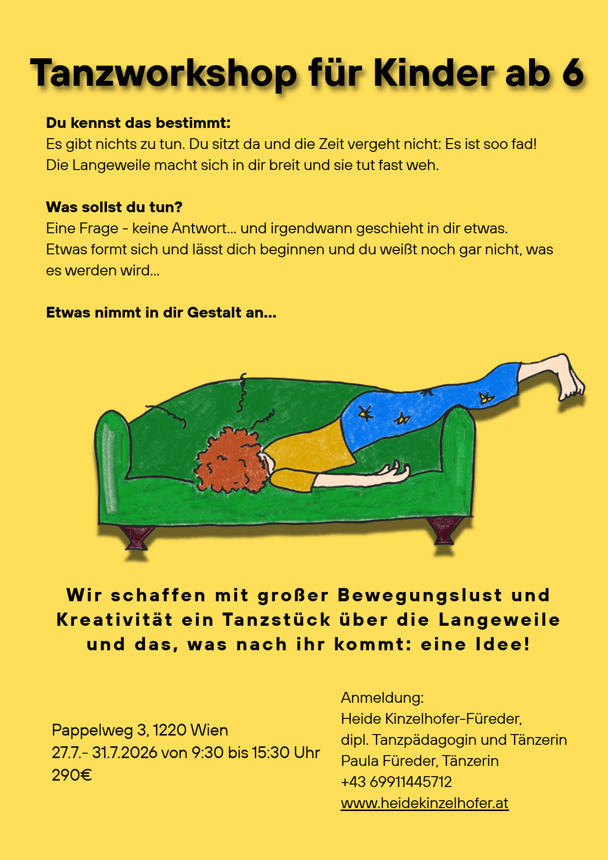 In lustbetonter Art widmen wir uns dem Tanz in seiner Vielfalt. Nicht leistungsorientiert, aber mit Regelbewusstsein und Lernabsicht. Balletttechnische Grundbegriffe wie koordinationsfördernde Übungen und Musikverständnis werden kindgerecht eingeführt.Für Kinder ab 4 und bis ca.12 ( in verschiedenen Kursen)
