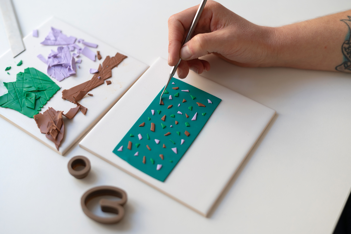 You’ll select your favourite colour palette, experiment with terrazzo, and design earrings that reflect your personal style. Your creations will be baked on-site so you can take them home the same day. If additional baking time is needed, pieces can be picked up later or delivered for an extra €5.
