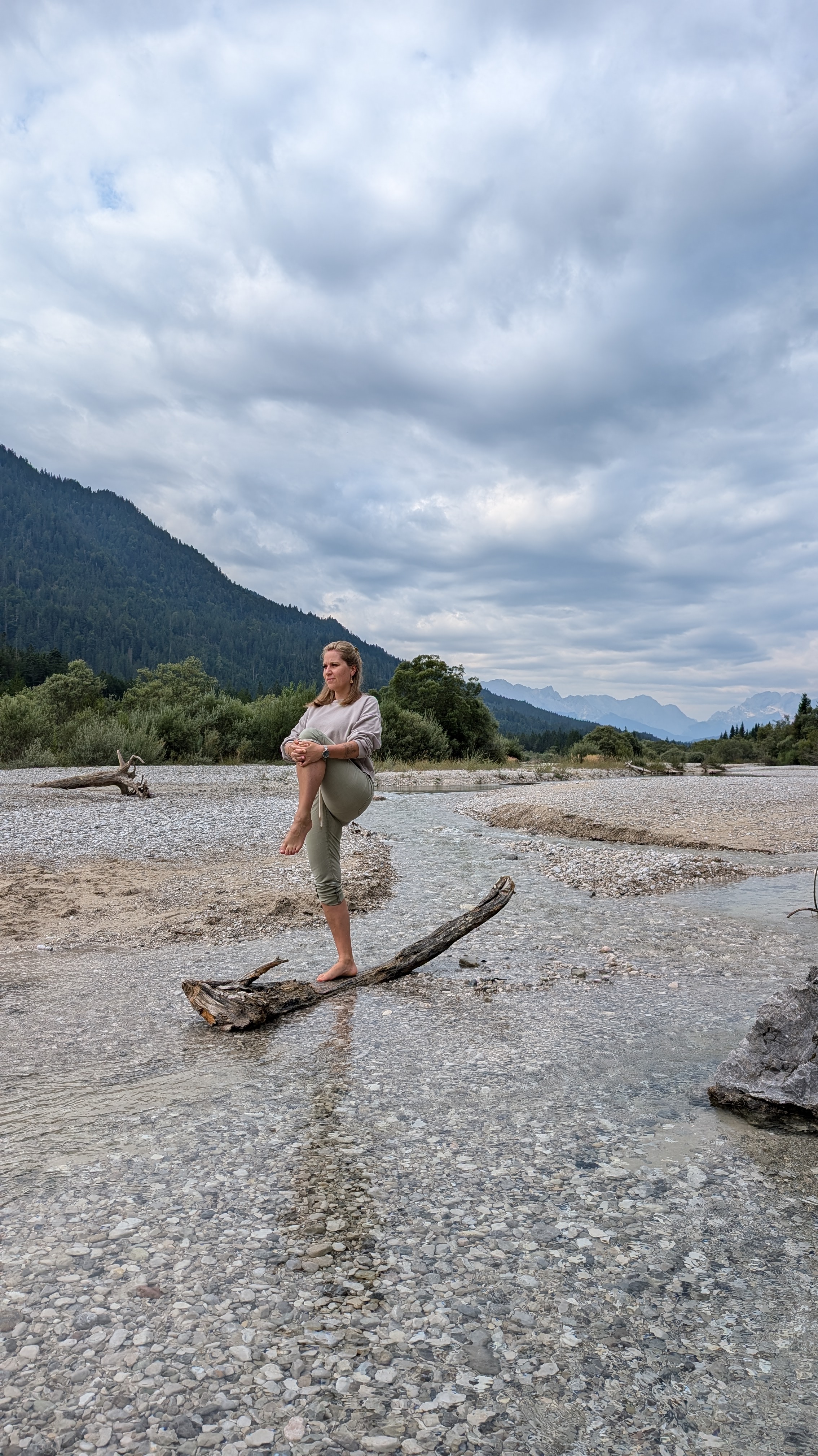 Wir starten erst mit Atemübungen, um auf der Matte anzukommen und den Alltag hinter uns zu lassen.