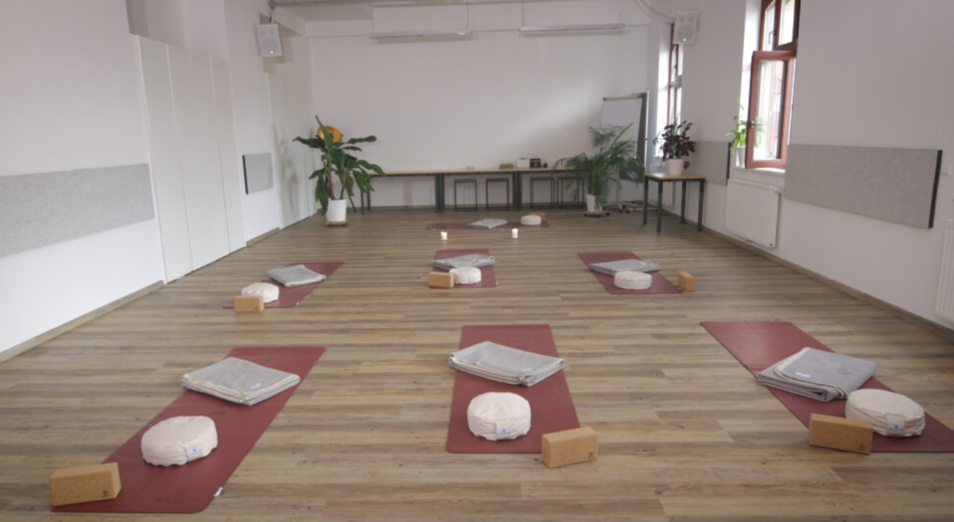 Matten, Decken, Blöcke und Sitzkissen haben wir für dich vor Ort.