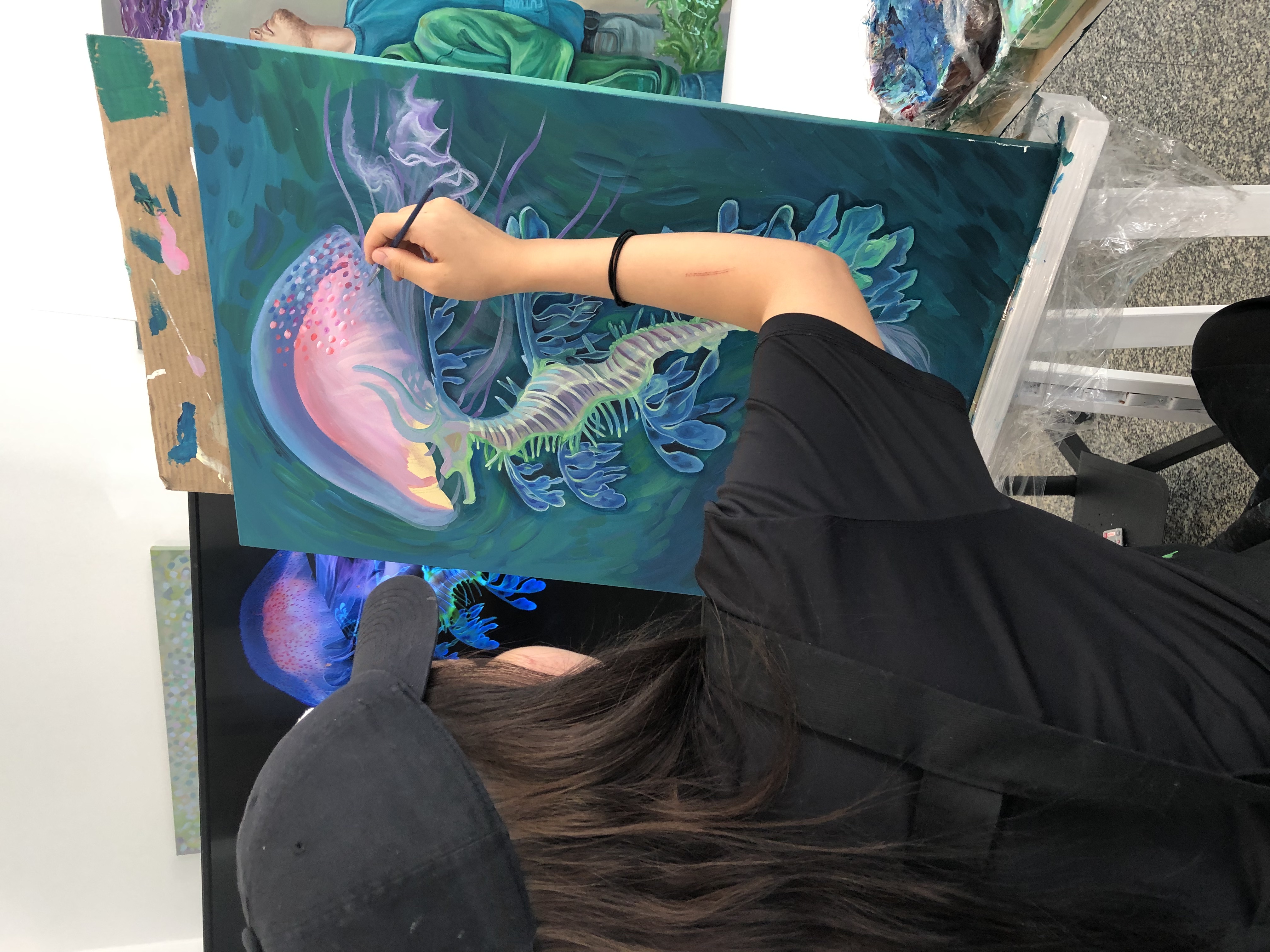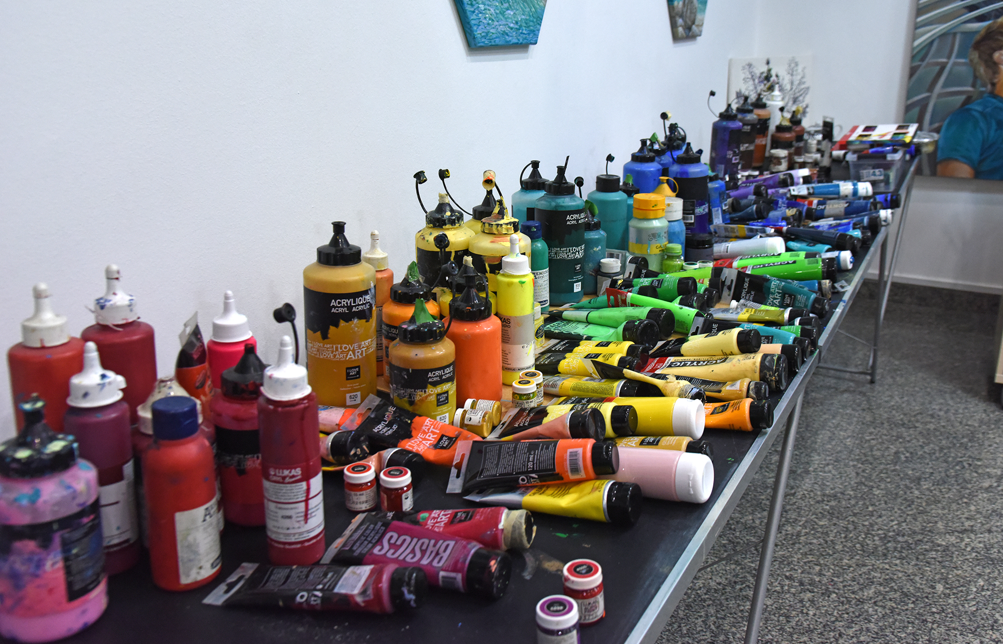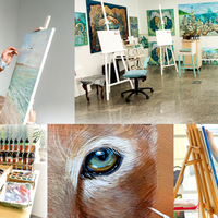 ◽ Sie lernen verschiedene Acrylfarben und Materialien kennen, es steht eine große Auswahl an Farben und Pinseln zur Verfügung. Die passenden Materialien sind eine wichtige Voraussetzung.