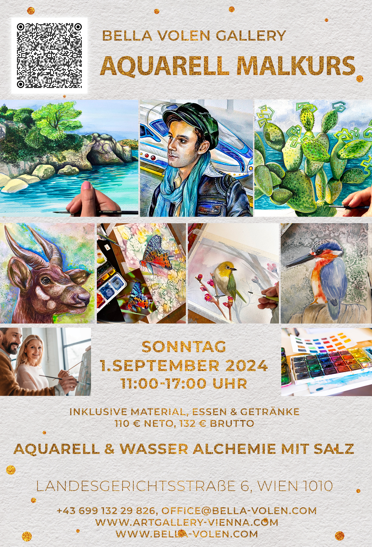 ✨ 1 Tag Aquarell Malkurs am 1. September, Sonntag mit Mag.art. Bella Volen, Kunstmalerin und Galeristin.