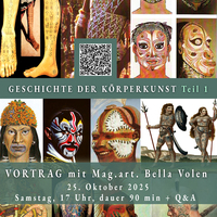 Körperkunst ist in erster Linie ein Kommunikationsmittel. Gemeinsam begeben wir uns auf eine visuelle Reise durch verschiedene Formen und Traditionen, die uns inspirieren, aber auch herausfordern und überraschen können. Durch Fotografien und Videos öffnen sich Einblicke in verborgene Kapitel der Menschheitsgeschichte.