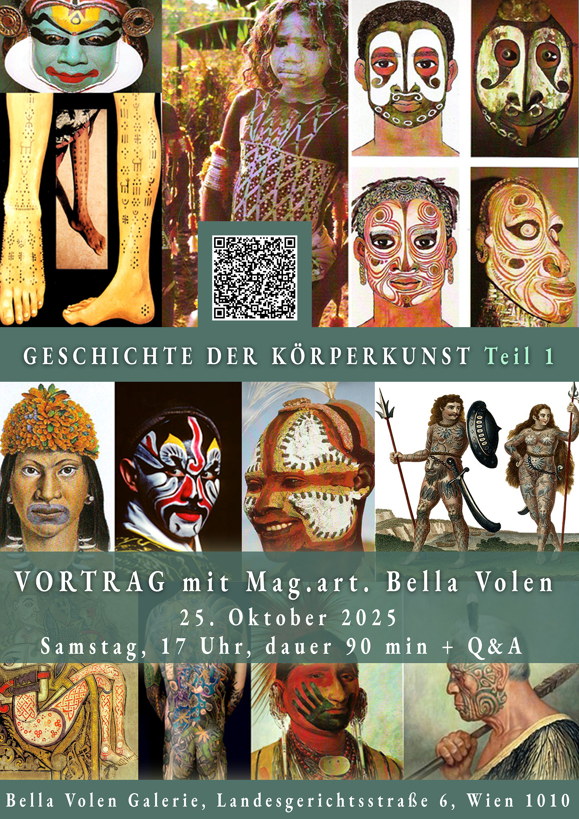 Mag.art. Bella Volen ist akademische bildende Künstlerin, Galeristin, Kunst Dozentin & Unternehmerin. Neben ihrer Arbeit als Kunstmalerin setzt sie seit 2005 Körperkunst als zeitgenössische Ausdrucksform ein. Durch über zwei Jahrzehnte intensiver Forschung, zahlreiche Reisen und internationale Recherchen hat sie vielfältige kulturelle Geschichten entdeckt und unterichtet nicht nur bildende Kunst, sondern auch Geschichte der Körpekunst.