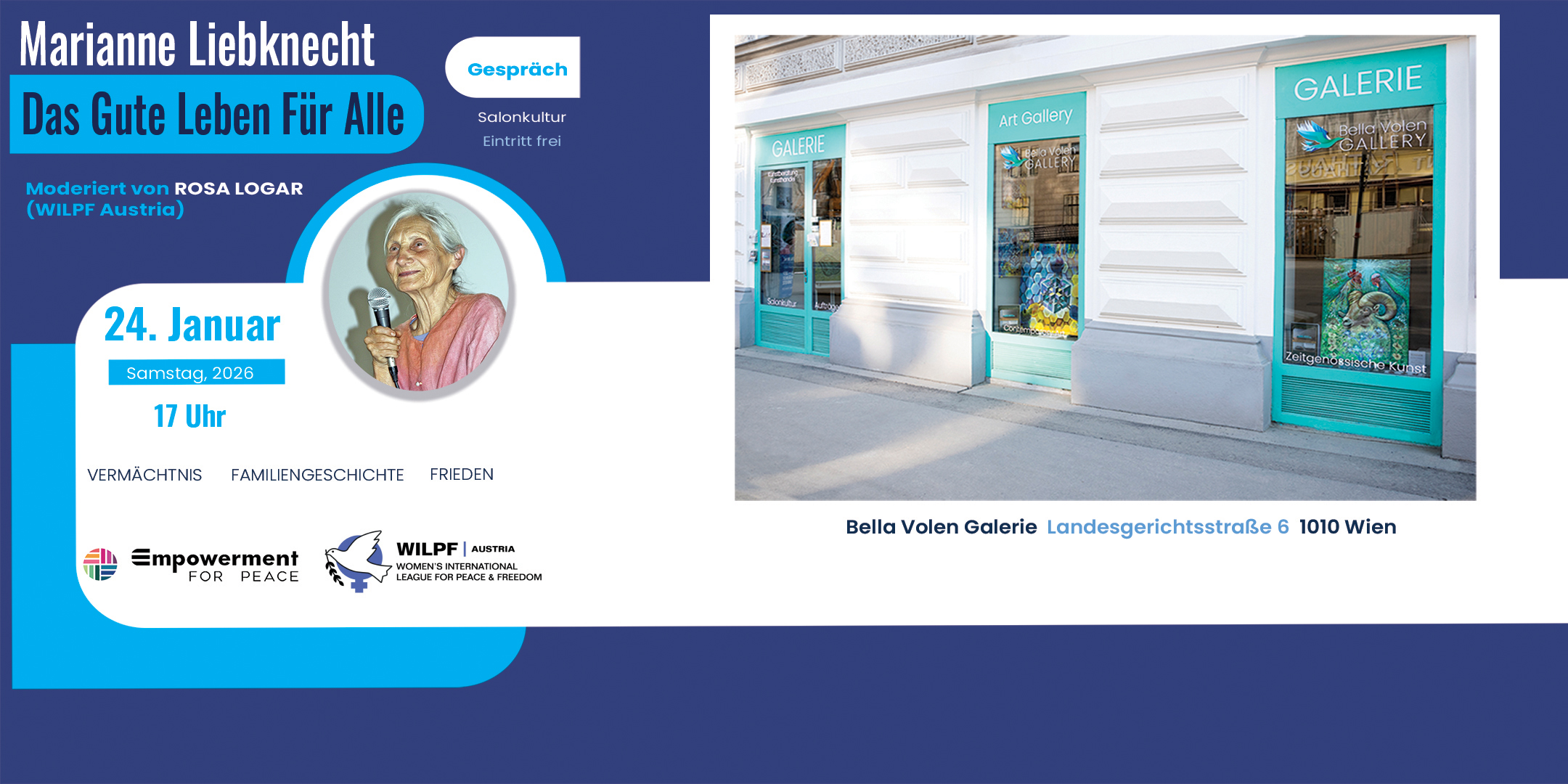 ⚪ Das Gespräch wird moderiert von der Feministin Rosa Logar (WILPF Austria), die den Austausch mit ihrer langjährigen Erfahrung in feministischer Friedensarbeit und Zivilgesellschaft begleiten wird.