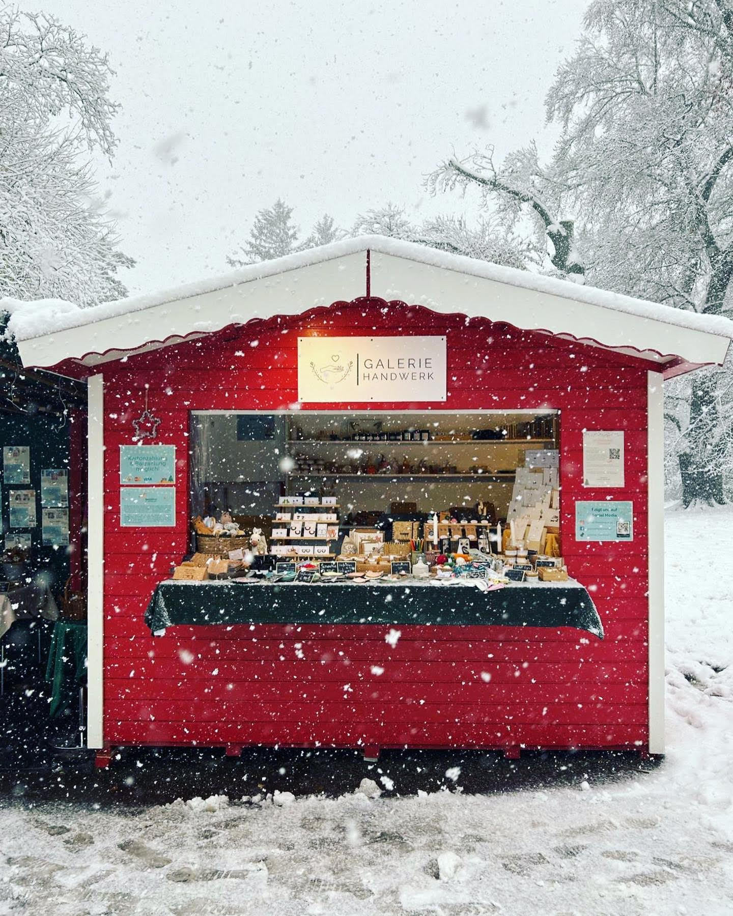 Wir haben am Weihnachtsmarkt im Türkenschanzpark einen Stand mit Kunstwerken von diversen Handkunstwerker*innen.