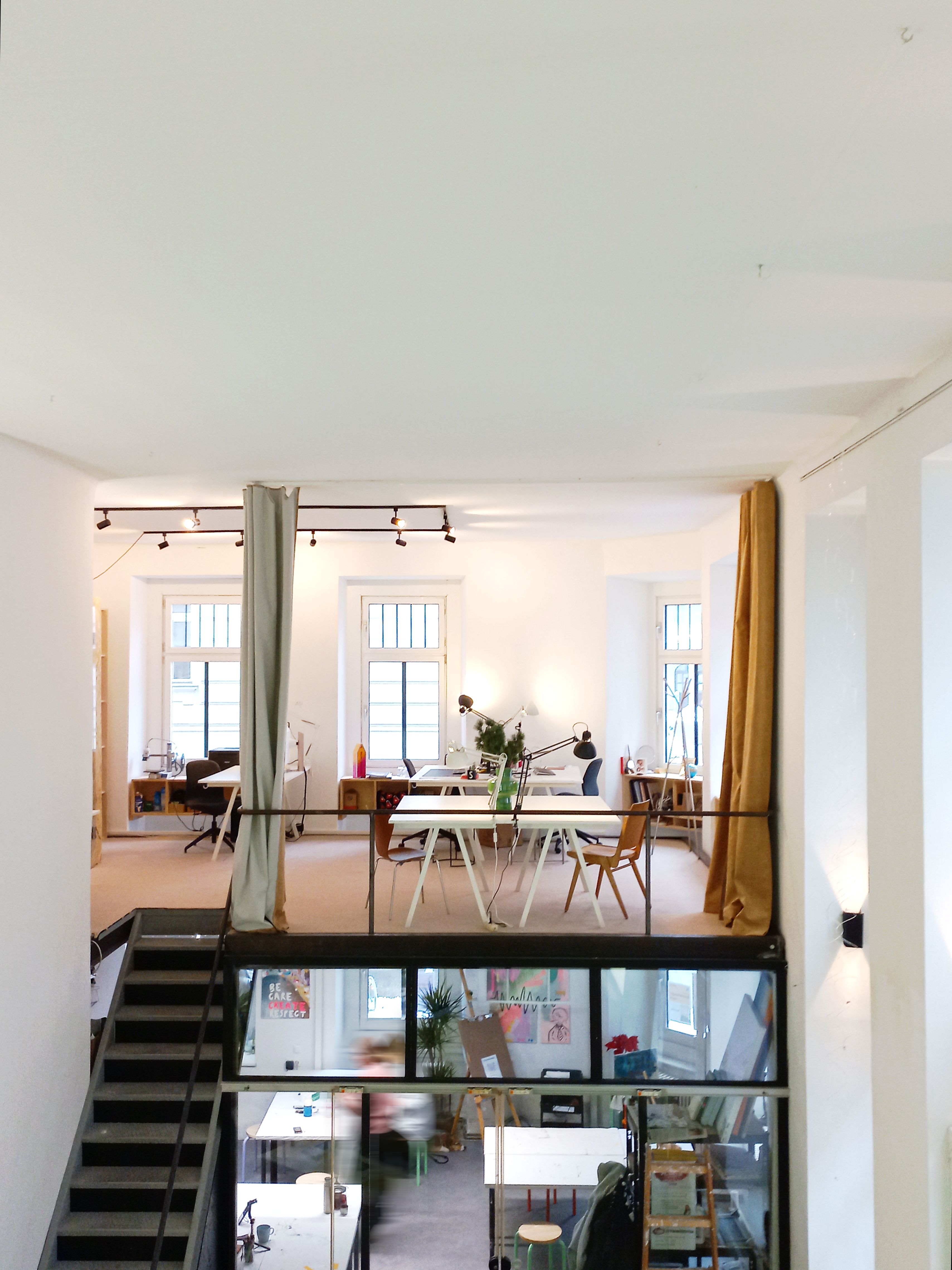 - Räume mit verschiedenen Vorteilen: Wasseranschluss im Raum? Schmutziges Arbeiten? Eigener Eingang zur Straße? Symbiose zum Ausstellungsraum & Sichtbarkeit? ...