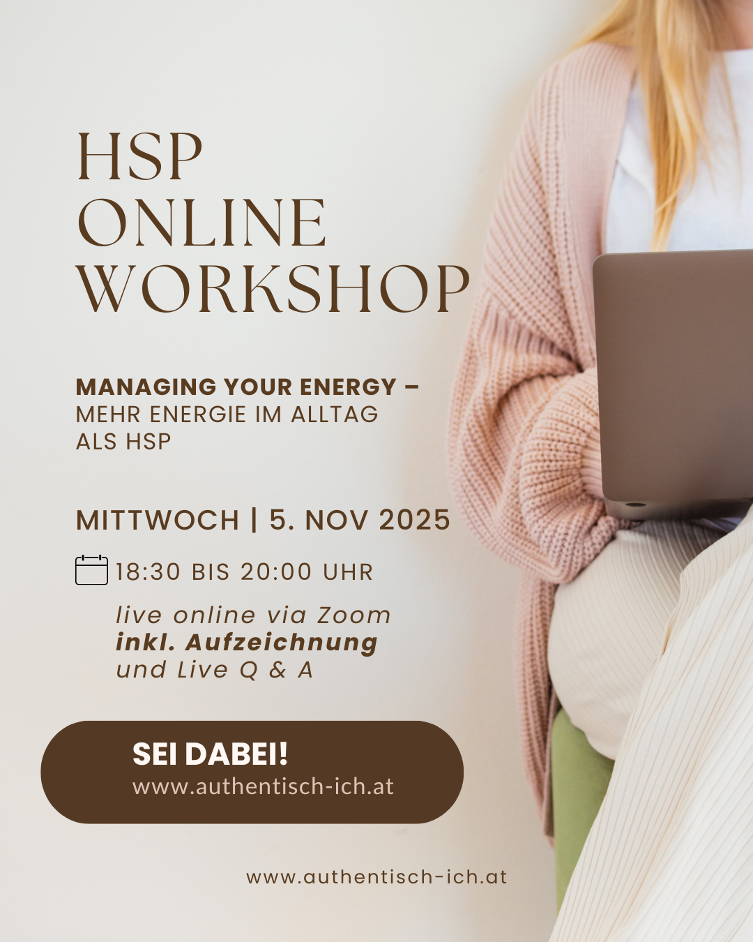 👉 Dann lade ich dich ganz herzlich zu meinem Workshop „Energiemanagement für Hochsensible – mehr Energie im Alltag als HSP“