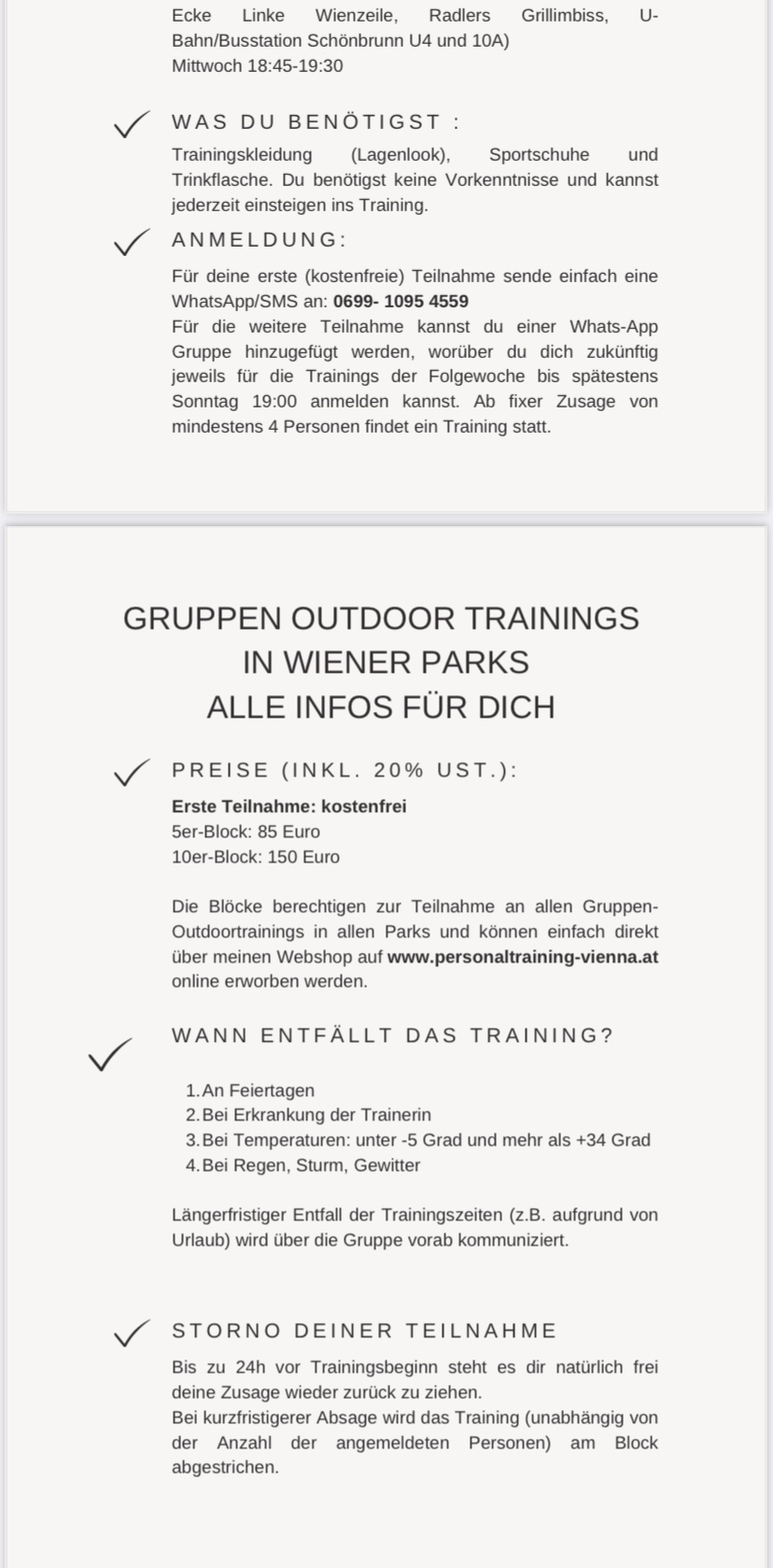 Anmeldung bis spätestens 24h vor Beginn per SMS/WhatsApp/Mail an VERENA: 0699-1095 4559
