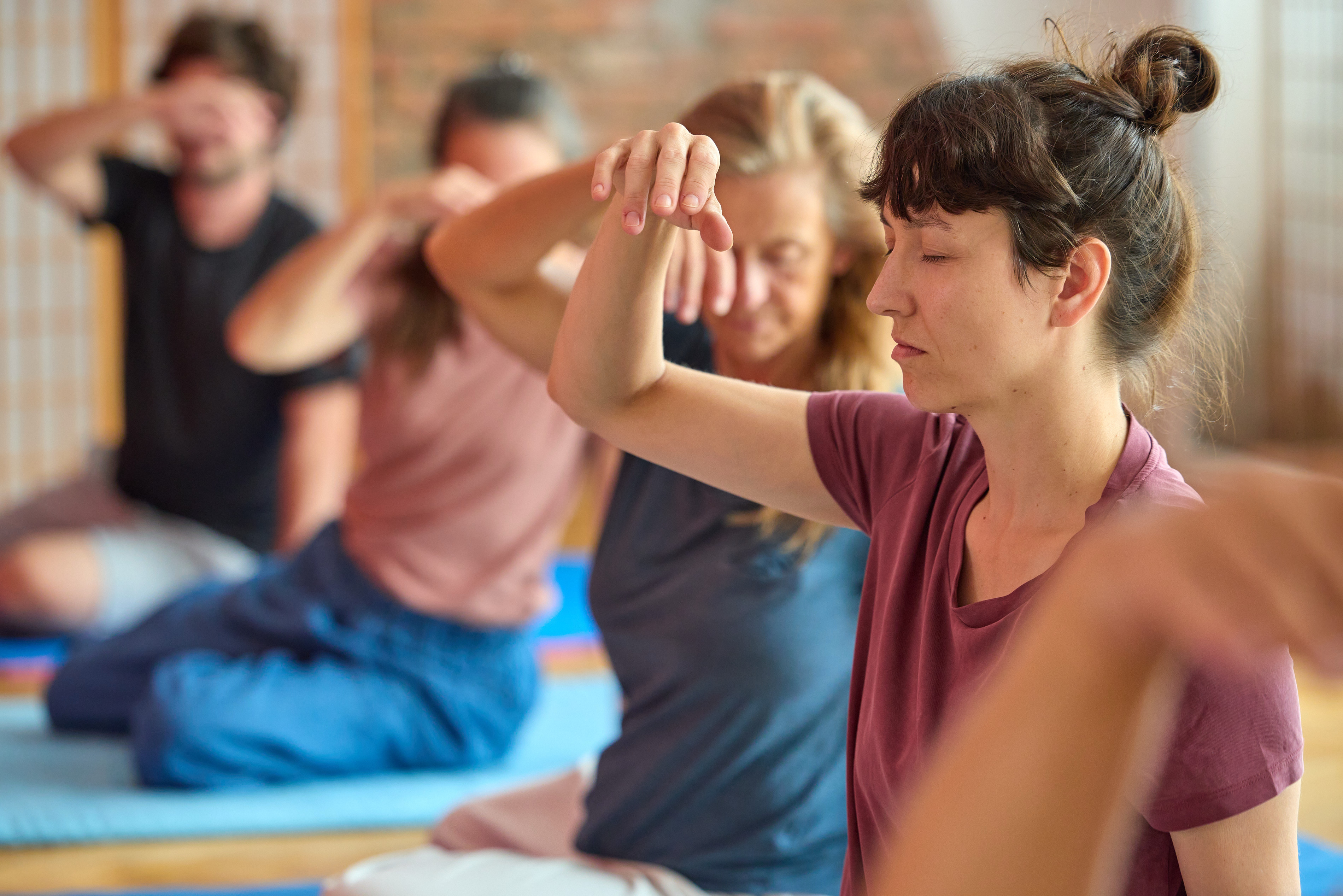 In den Gruppenstunden „Bewusstheit durch Bewegung“ leite ich die Bewegungslektionen rein verbal an. Die meisten Stunden werden im Liegen auf einer Matte, manche auch im Sitzen oder Stehen angeleitet. Viele Lektionen orientieren sich dabei an der kindlichen Bewegungsentwicklung.