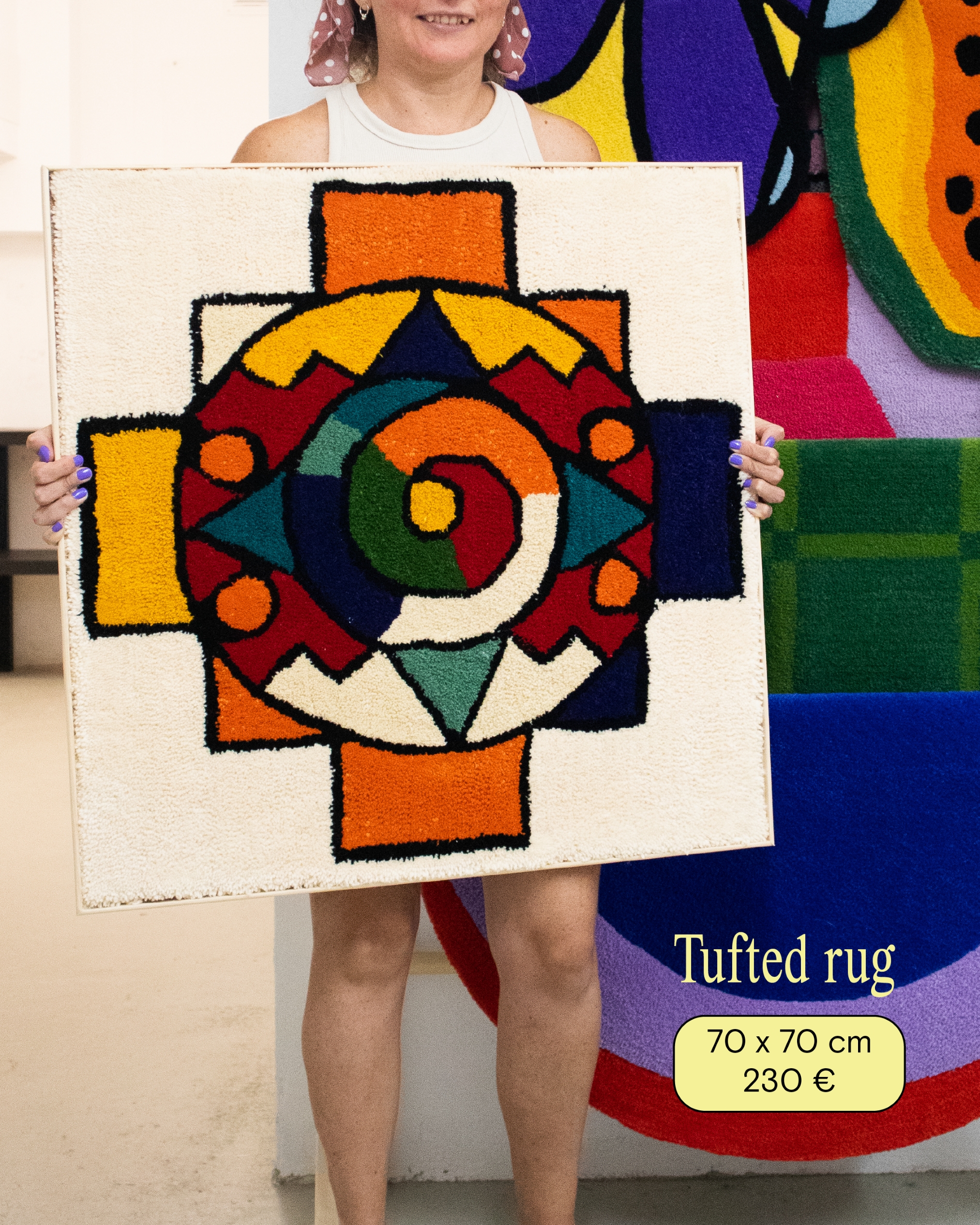 We also craft artistic pieces like wall hangings and textile murals, always using the tufting technique.