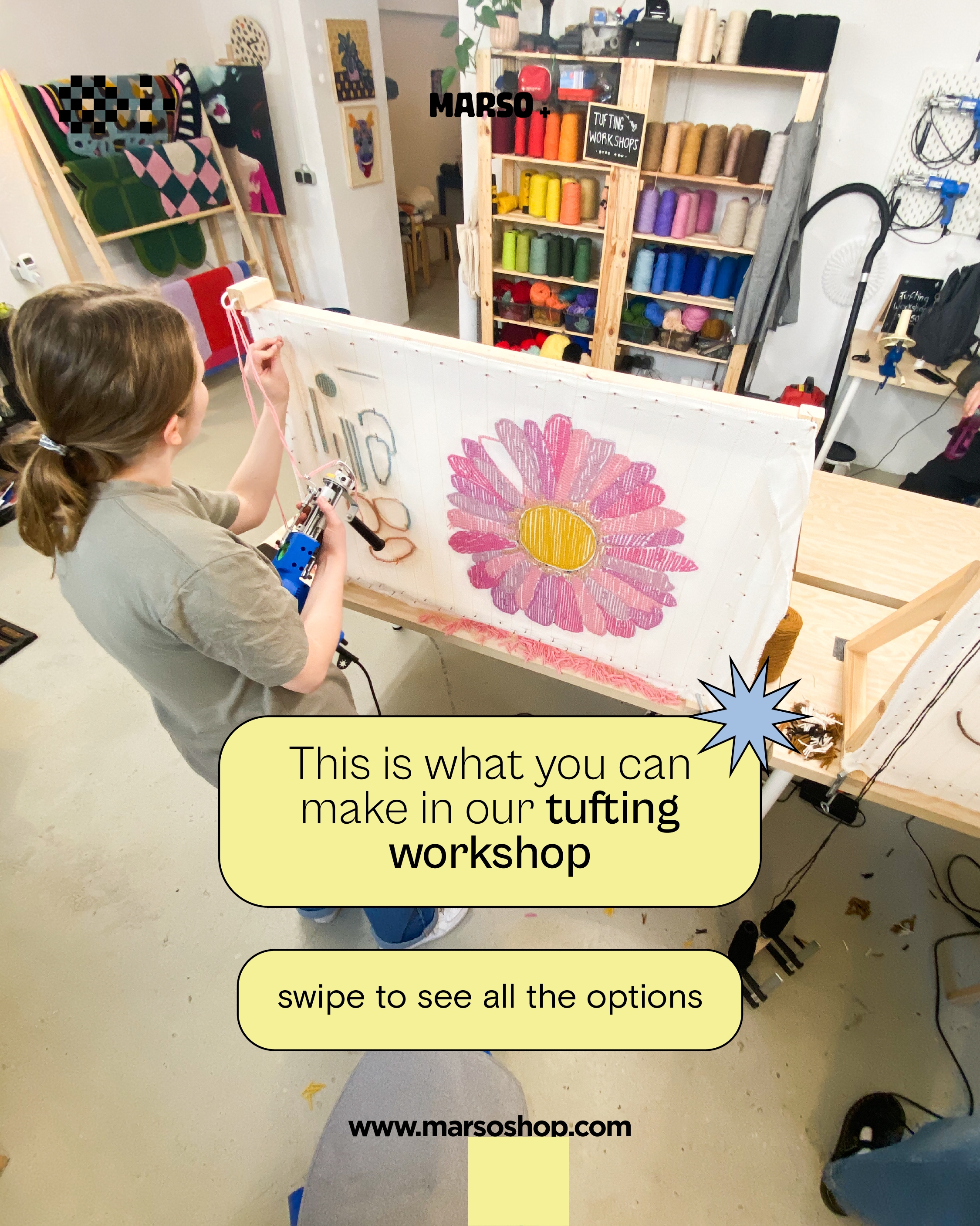 At Marso Studio, we host tufting workshops in Vienna. Hands-on, creative experiences where you can design and make your own rug from scratch while learning all about tufting. It’s a chance to express yourself, relax, and pick up a new skill.