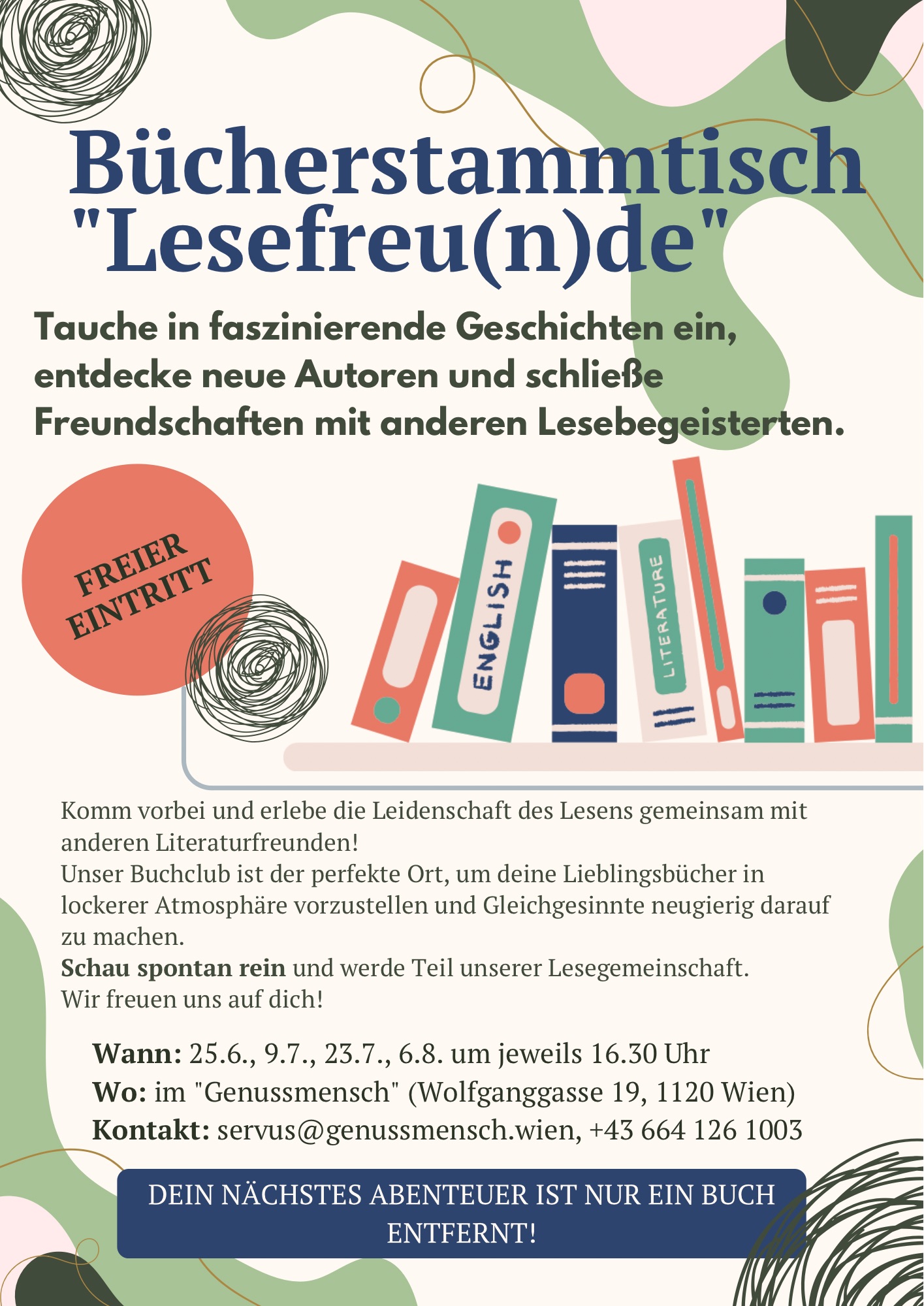 In entspannter Runde teilen wir unsere Buchschätze, diskutieren, lachen - und vielleicht findest du dabei schon dein nächstes Lieblingsbuch.