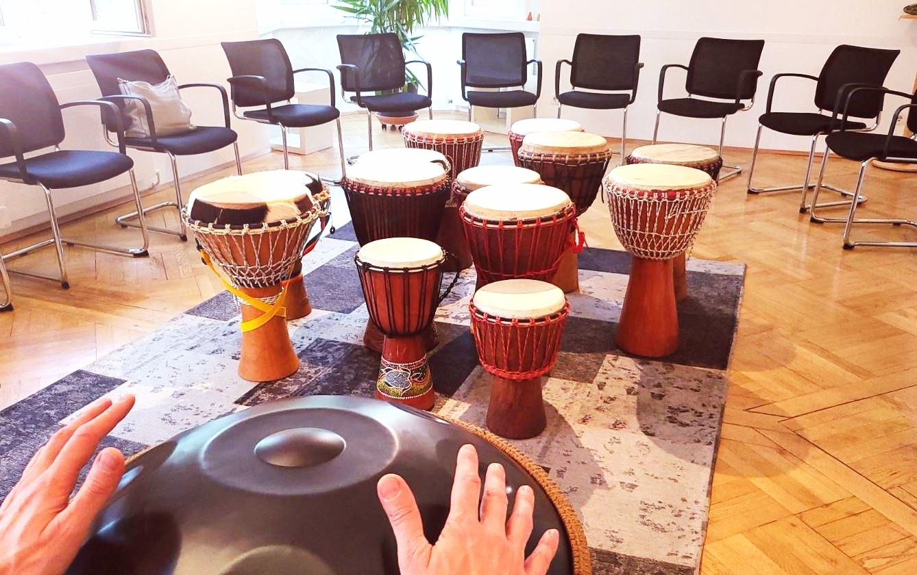 Wir trommeln gemeinsam auf Djemben - ganz lange den gleichen Rhythmus, achtsam und meditativ. Wir entschleunigen, bauen Stress ab, spüren Verbundenheit, tanken neue Energie - und genießen am Ende eine Klangreise. Mehr Infos auf www.Heilsame-Rhythmen.com