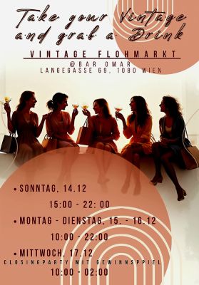 Wir veranstalten vom So 14.12 - Mi 17.12 2025 einen Vintage Flohmarkt mit sehr schöner Kleidung für Frauen, Kindersachen/ Spielzeug und handgefertigtem Schmuck in der großartigen Bar Omar. Die Ware ist in einem sehr guten bis neuwertigen Zustand zu fairen Preisen, denn den Preis kannst du mit uns gemeinsam fair mitgestalten.