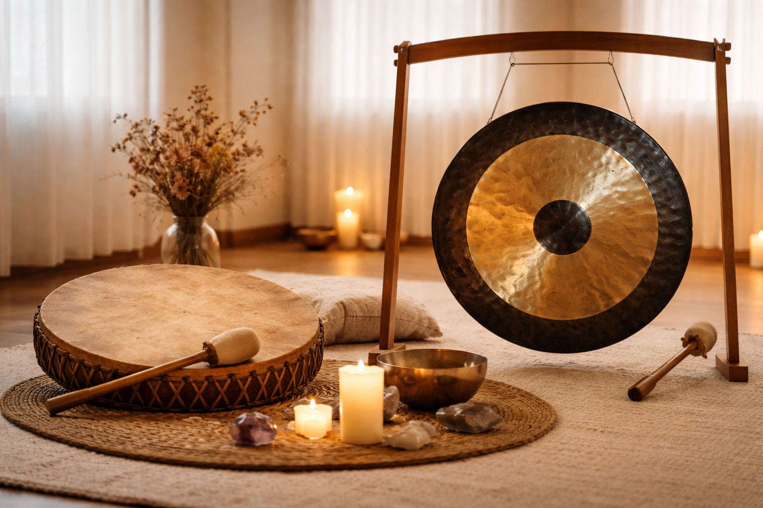 Das Gongbad öffnet einen Raum jenseits des Alltäglichen – eine Einladung, dich auf eine Reise durch verschiedene Bewusstseinsebenen einzulassen. Getragen von den tiefen, schwingenden Klängen der Gongs kannst du Schicht für Schicht loslassen und immer tiefer in dein Inneres sinken.