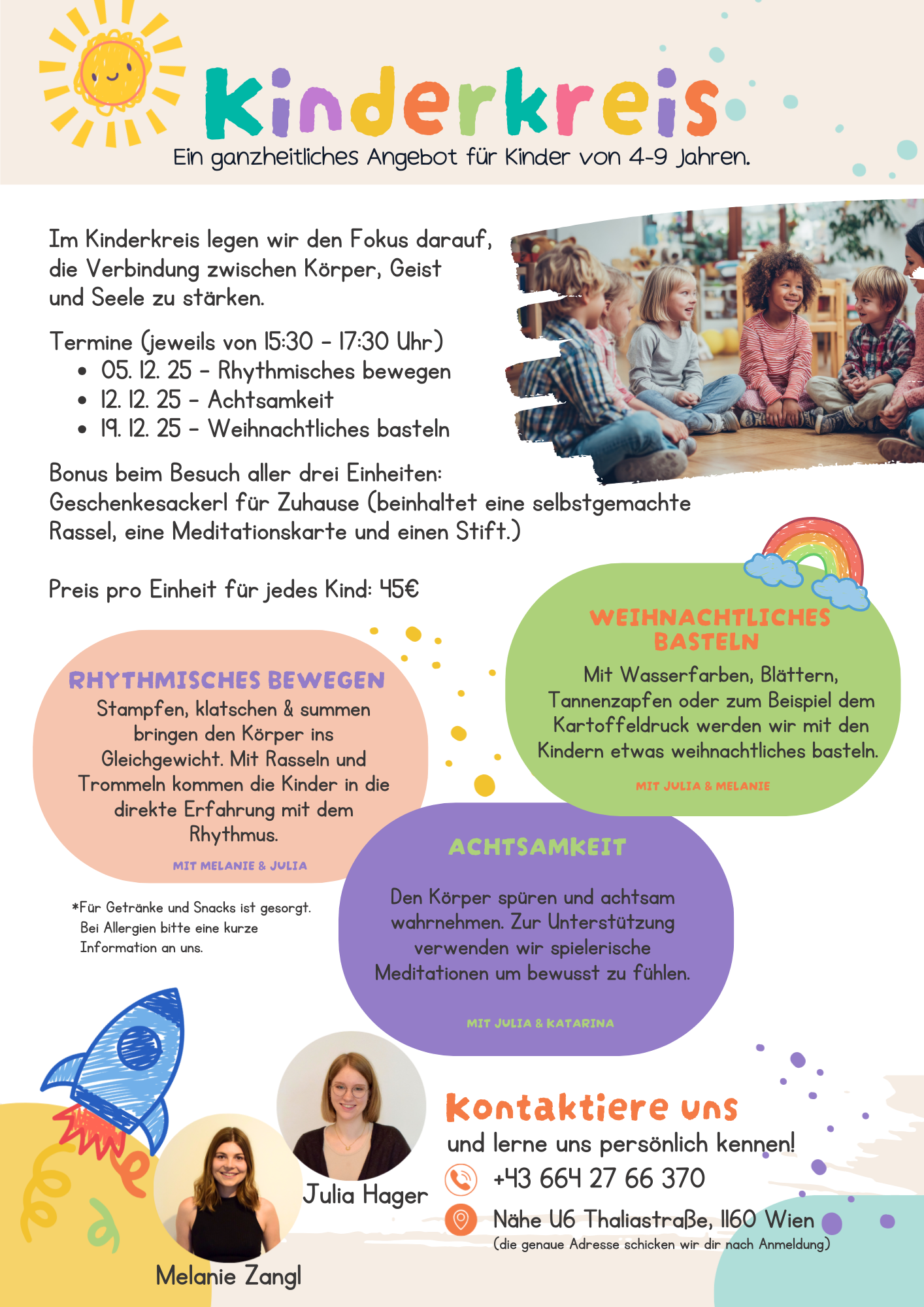 Kontaktieren Sie uns gerne, zur Anmeldung oder für ein persönliches kennenlernen! (Julia 0664 27 66 370)
