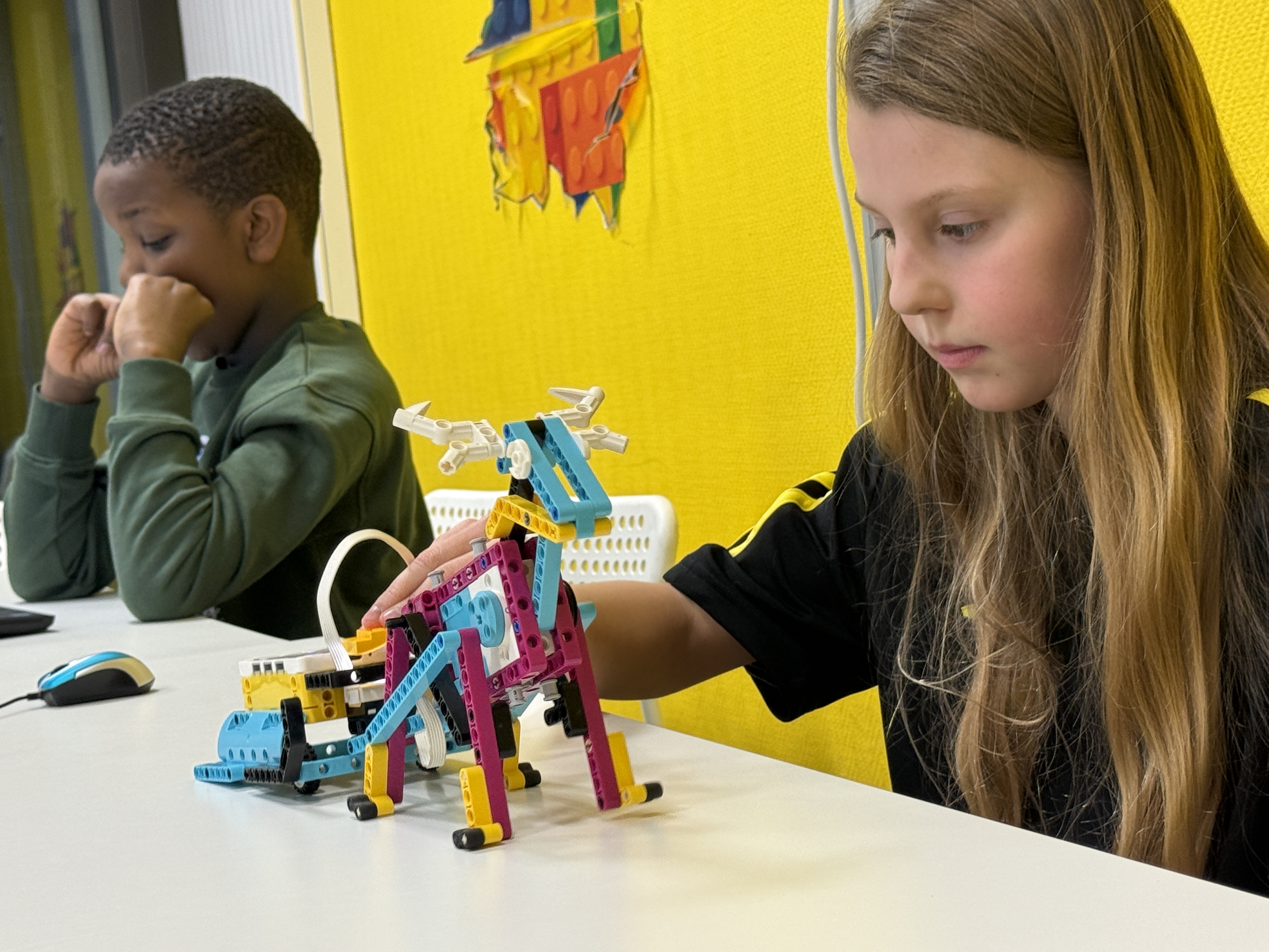 In den Robotik- und Programmierkursen arbeiten Kinder mit LEGO®-Robotik und spielerischen Coding-Aufgaben. In kleinen Gruppen bauen sie Modelle, programmieren Bewegungen und lösen praxisnahe Herausforderungen. Dabei entwickeln sie Schritt für Schritt logisches Denken, Problemlösekompetenz, Teamarbeit und digitale Kreativität.