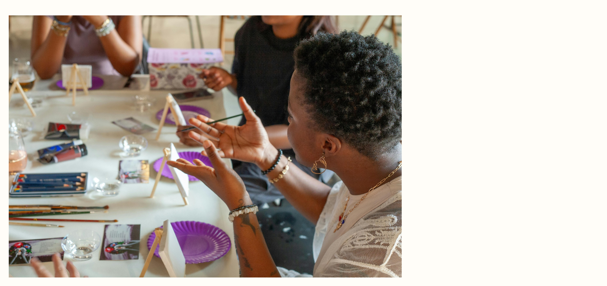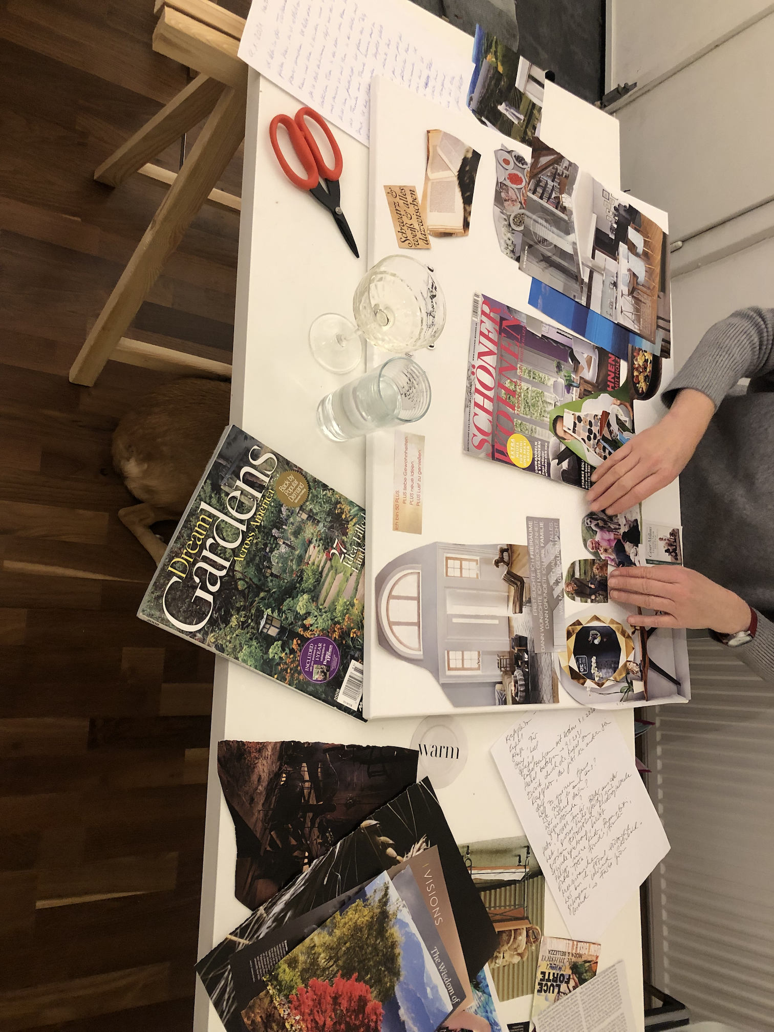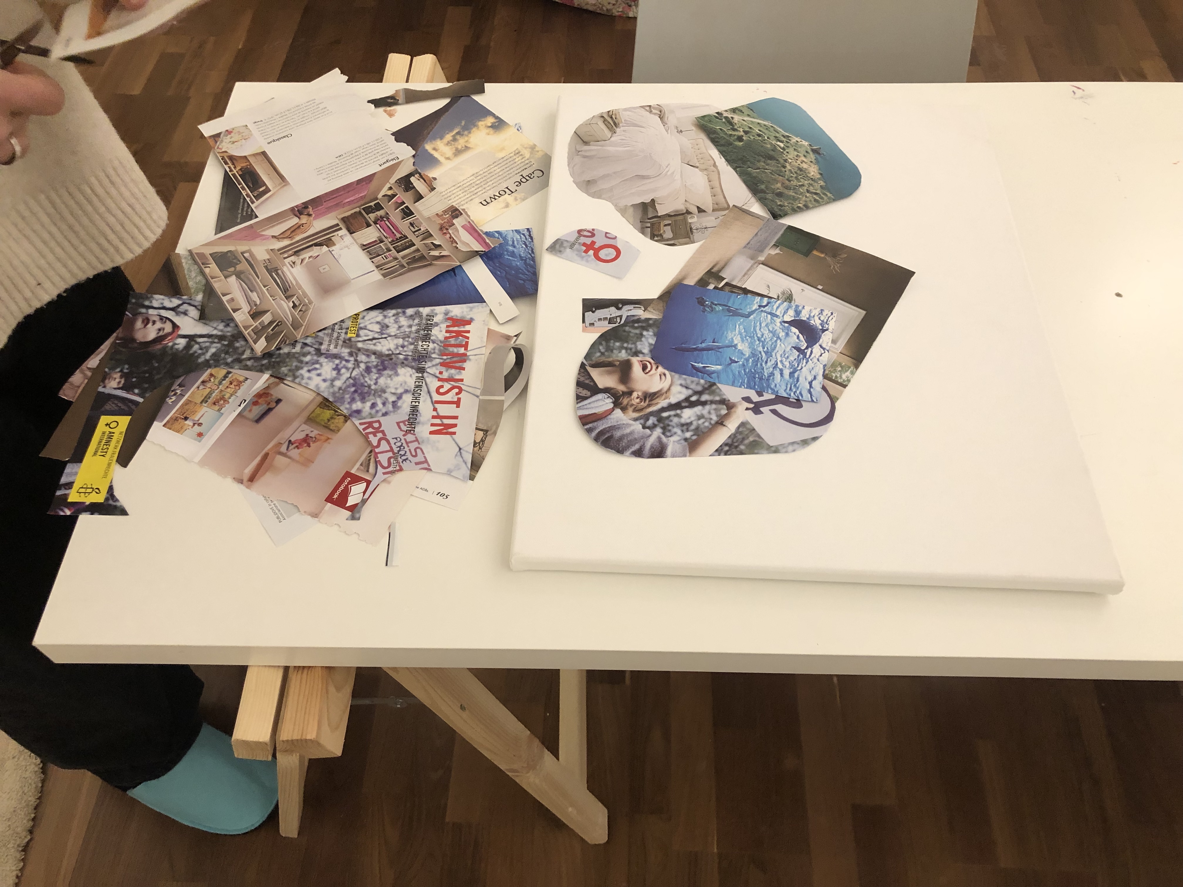 In entspannter Atmosphäre gestaltest du – mit Prosecco oder Kräutertee – eine kreative Collage auf Leinwand, die dich durchs Jahr begleitet.