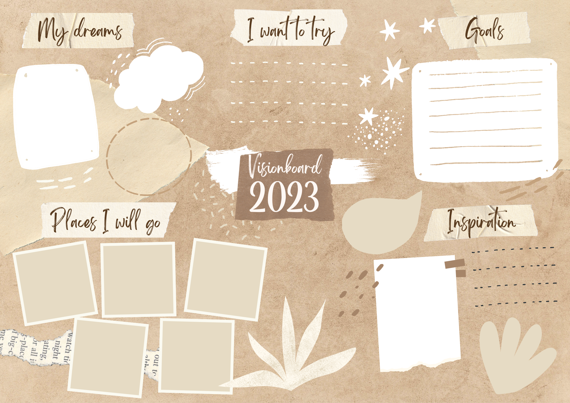 Unten findest du ein Beispiel, wie so ein Visionboard aussehen kann.