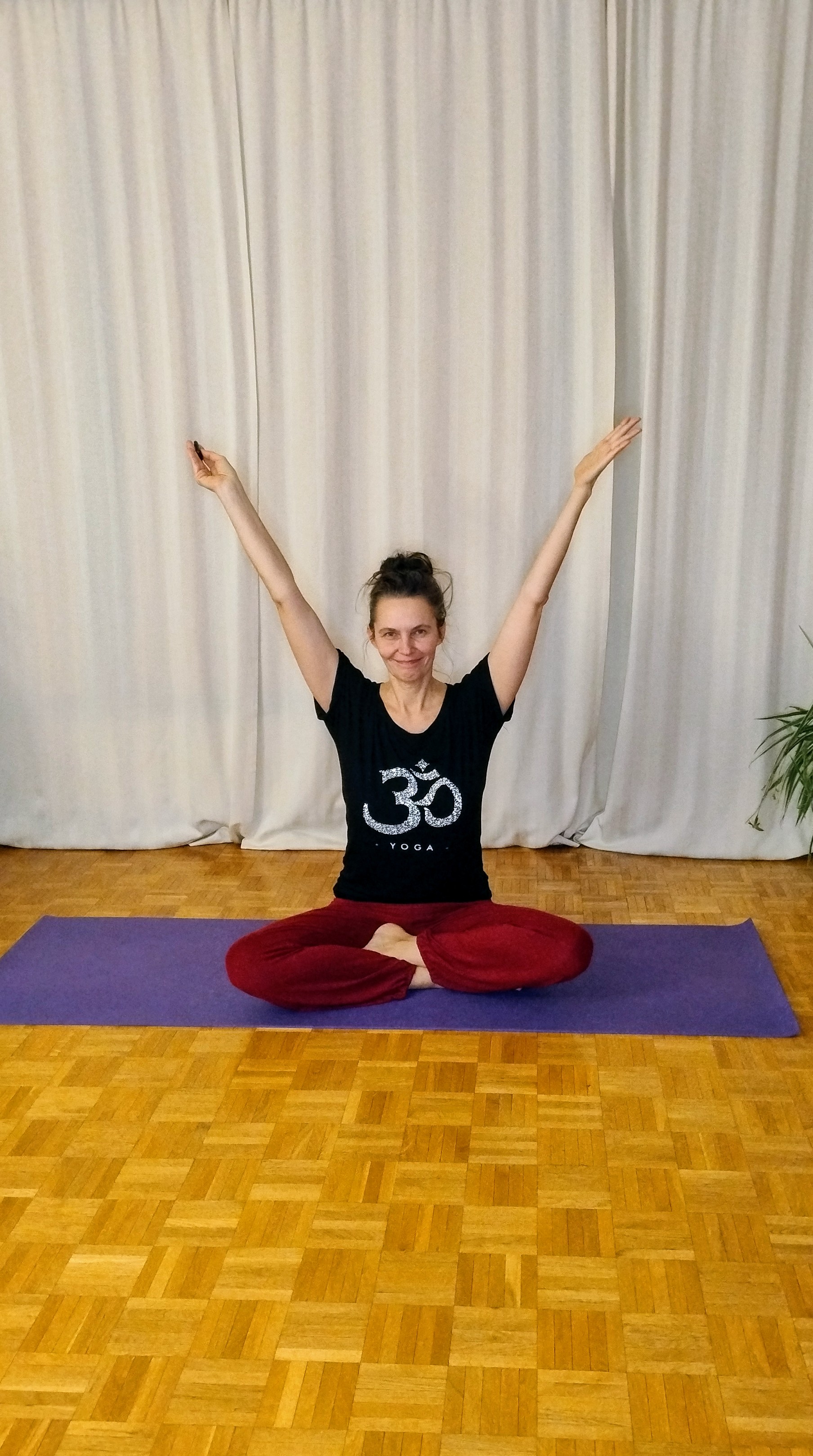 Vorübungen, einfacher Sonnengruß und klassische Körperhaltungen aus dem Hatha Yoga kräftigen und dehnen den Körper.