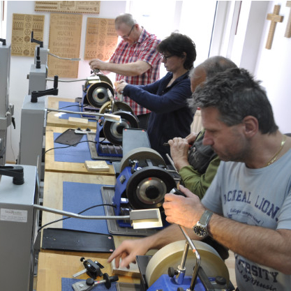 Im Kurs können verschiedene Schleifsysteme ausprobiert werden oder wenn du schon eine Maschine hast, aber nicht weiĂt, wie man schleift, bring sie einfach in den Kurs mit!