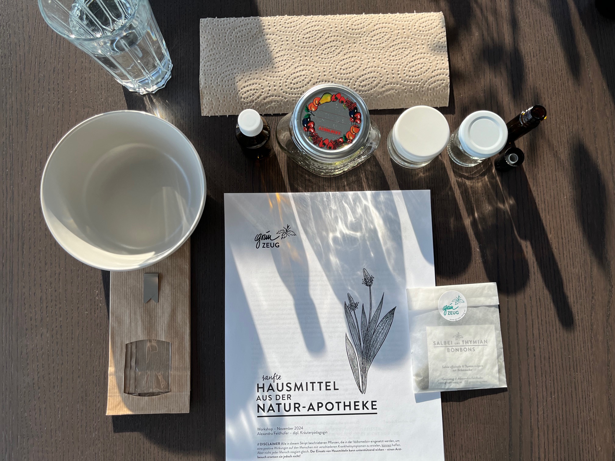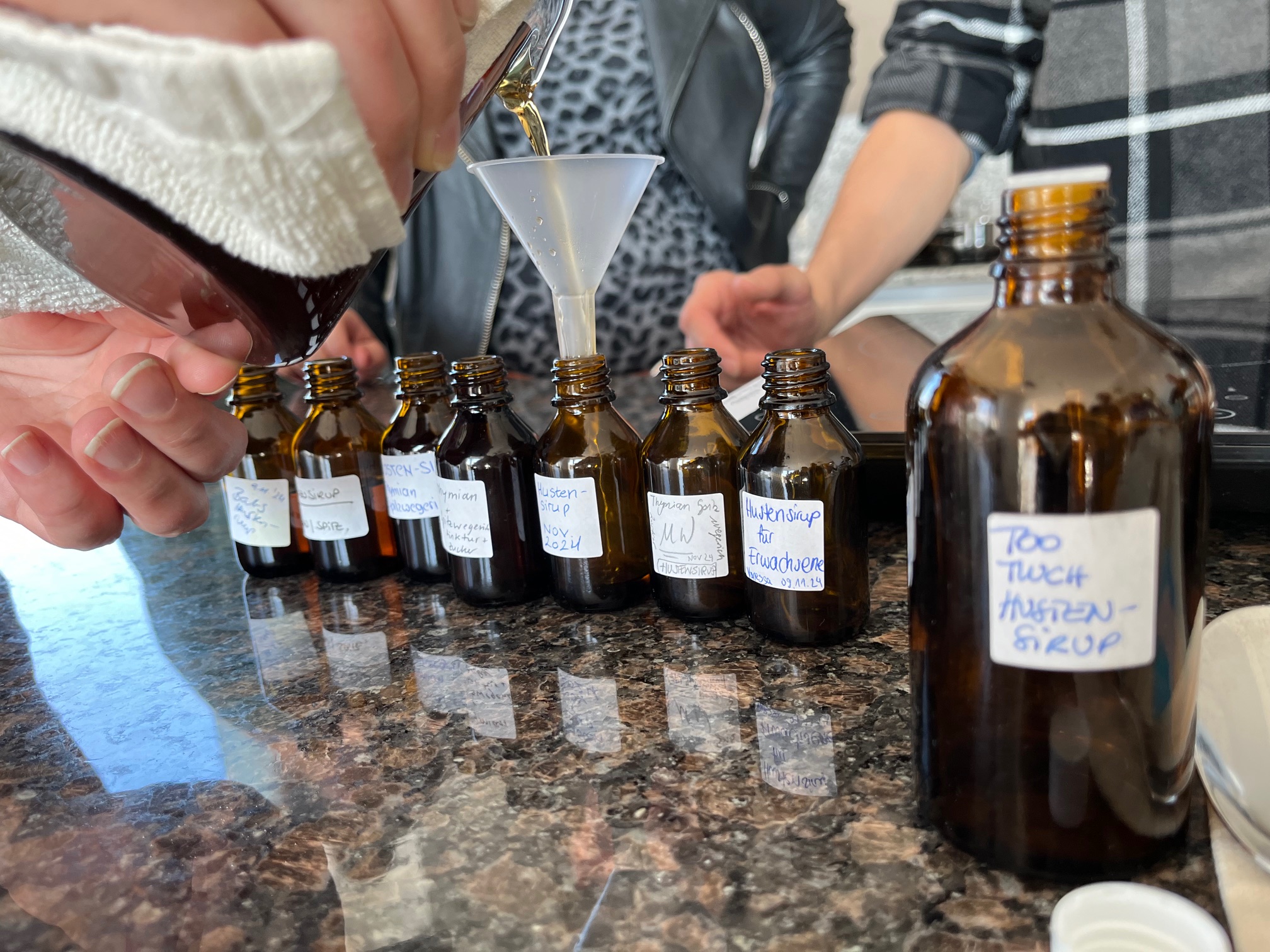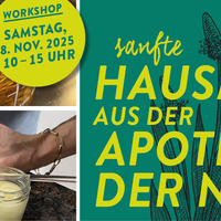 Wie sammelt man Kräuter richtig und wie machen wir sie haltbar? Welche (Heil-)Pflanzen können mir im Alltag helfen? Was ist ein Mazerat oder wie stelle ich eine Tinktur her? Wenn du dir diese Fragen schon mal gestellt hast, bist du in diesem Kurs richtig. In meinem Workshop lernst du, wie man ganz einfach seine natürlichen Hausmittel aus heimischen Wild- und Heilkräutern selbst herstellen kann und wie wir sie für uns nutzen können. Ganz ohne Vorkenntnisse. Jede*r Teilnehmer*in erlernt die notwendigen Techniken und erhält ein umfangreiches Skript mit detaillierten Erläuterungen, Pflanzenportraits und Rezepten. Wir verarbeiten 100% heimische Pflanzen und ‑auszüge in Bio-Qualität zu sanften Hausmitteln für die kalte Jahreszeit. Im Anschluß nimmst du deine selbst gemachten Produkte mit nach Hause: – Erkältungstee – Erkältungs-Oxymel – Hustensirup – Brustbalsam – Ringelblumensalbe – Entspannungs-Roll-On Datum: 8. November Uhrzeit: 10 bis 15 Uhr Ort: meinRaum8, Löwenburggasse 2/5, 1080 Wien Kurskosten: 118 Euro // inkl. sehr umfangreichem Skript und allen hochwertigen Materialien // Begrenzte Teilnehmer*innen-Anzahl // Anmeldungen unter: info@gruen-zeug.at Infos unter: www.gruen-zeug.at