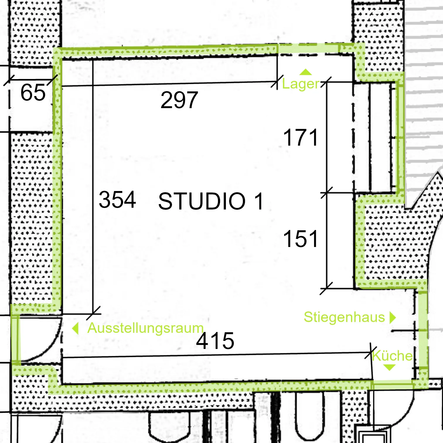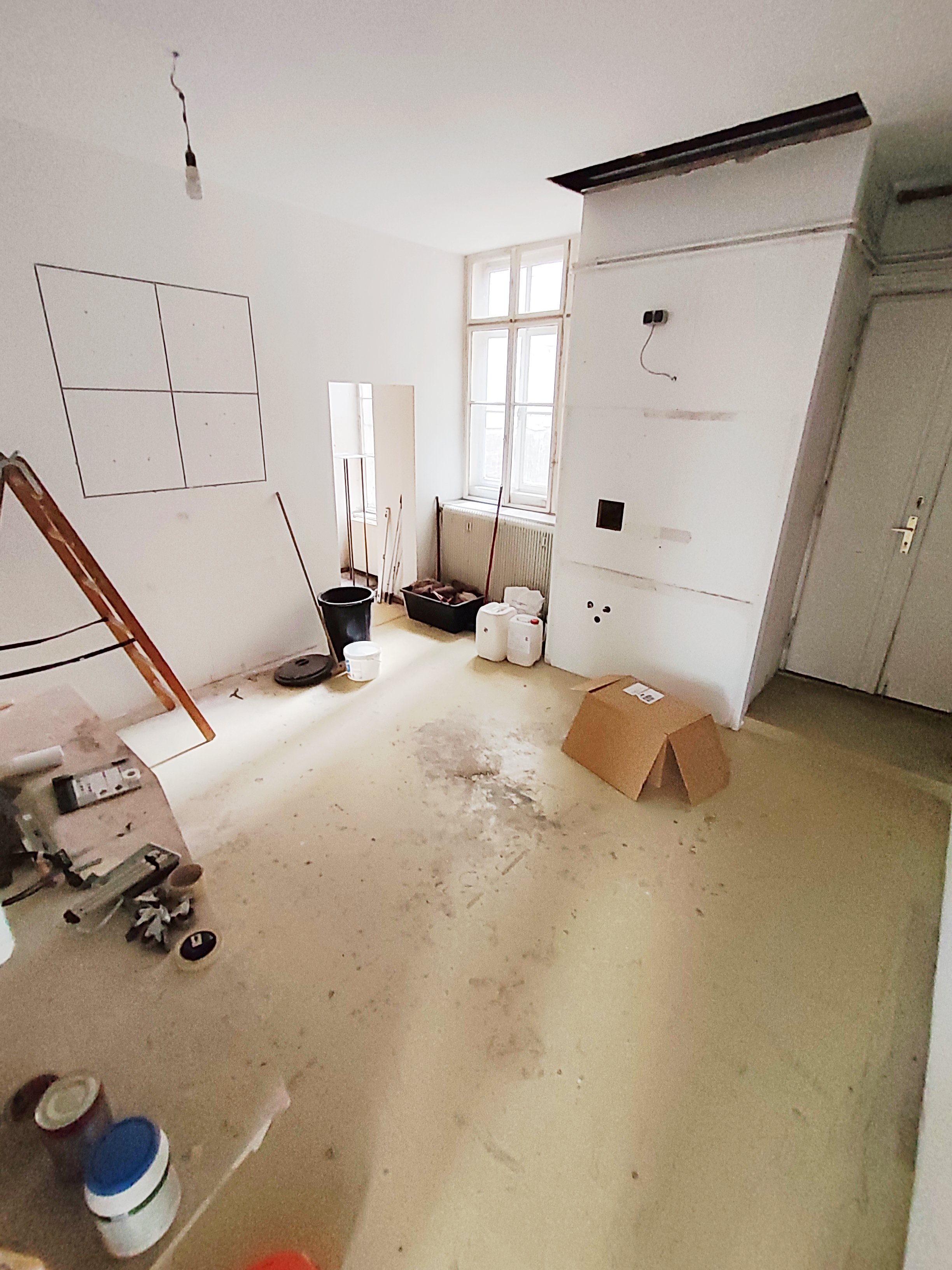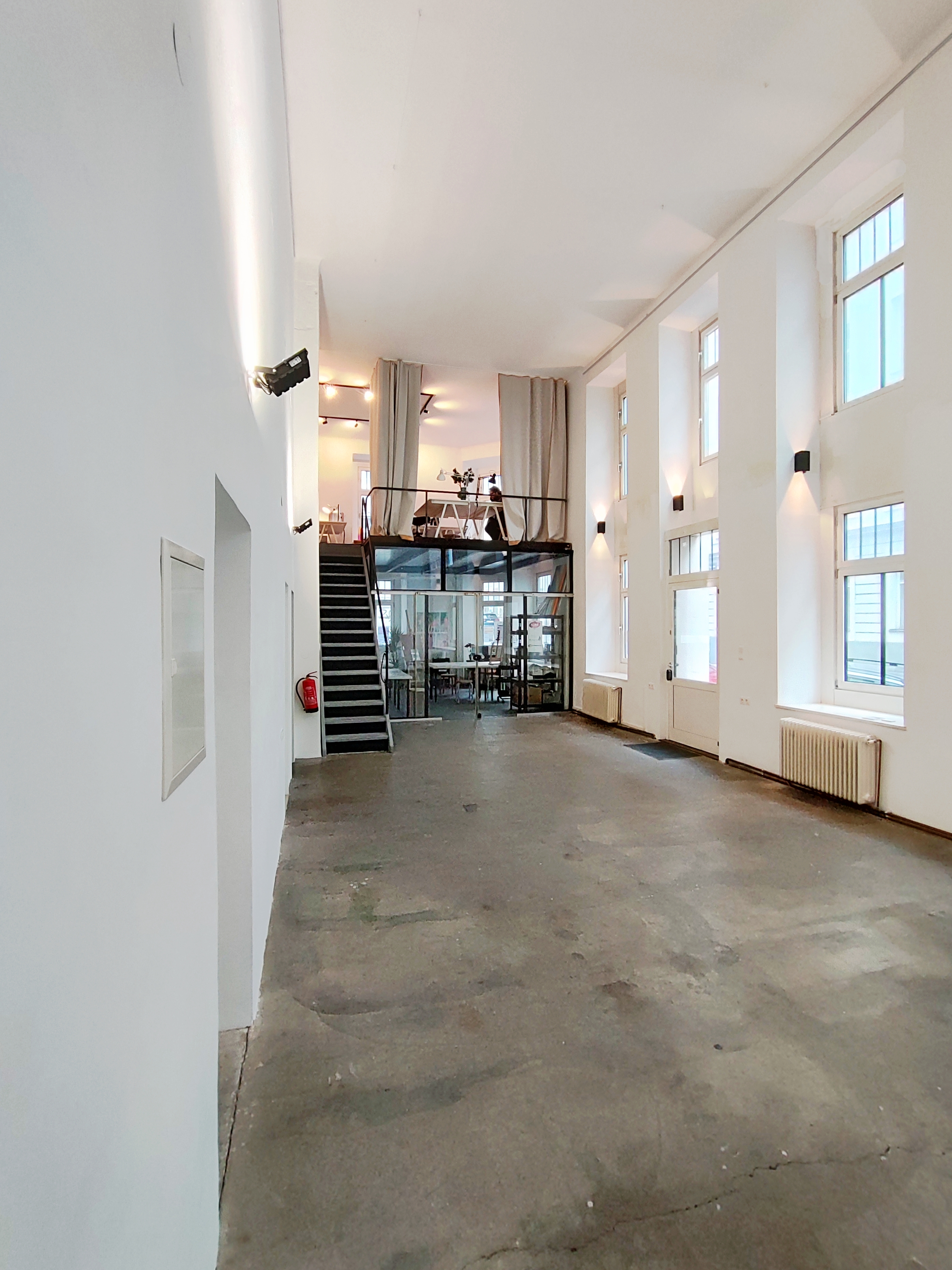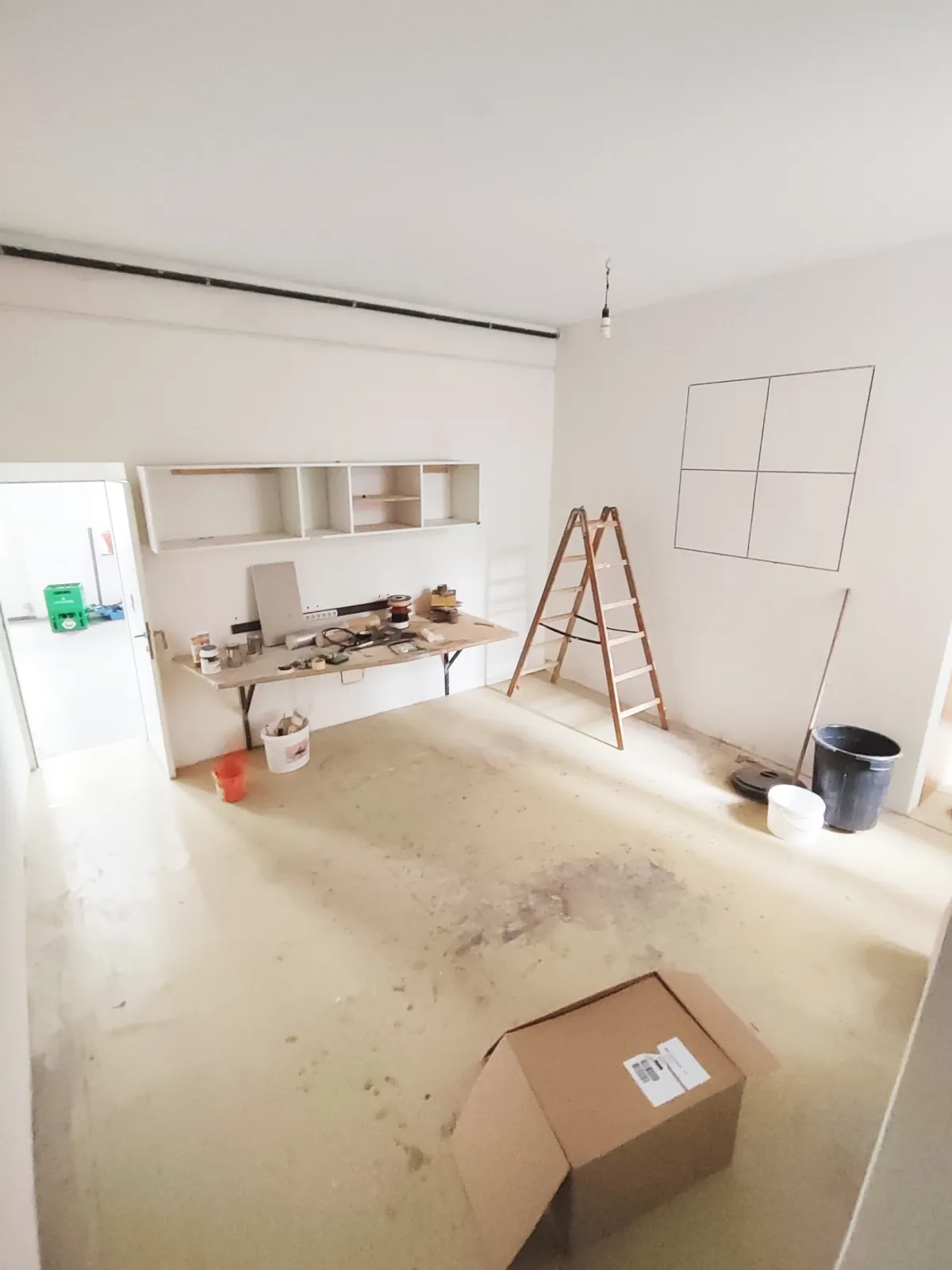 Mit Fenster zum Innenhof, Möglichkeit zu eigenem Eingang, Wasseranschluss und viel Wandfläche eignet sich das Studio 1 besonders gut für Arbeiten, bei denen auch Materialität und Schmutz eine Rolle spielen.