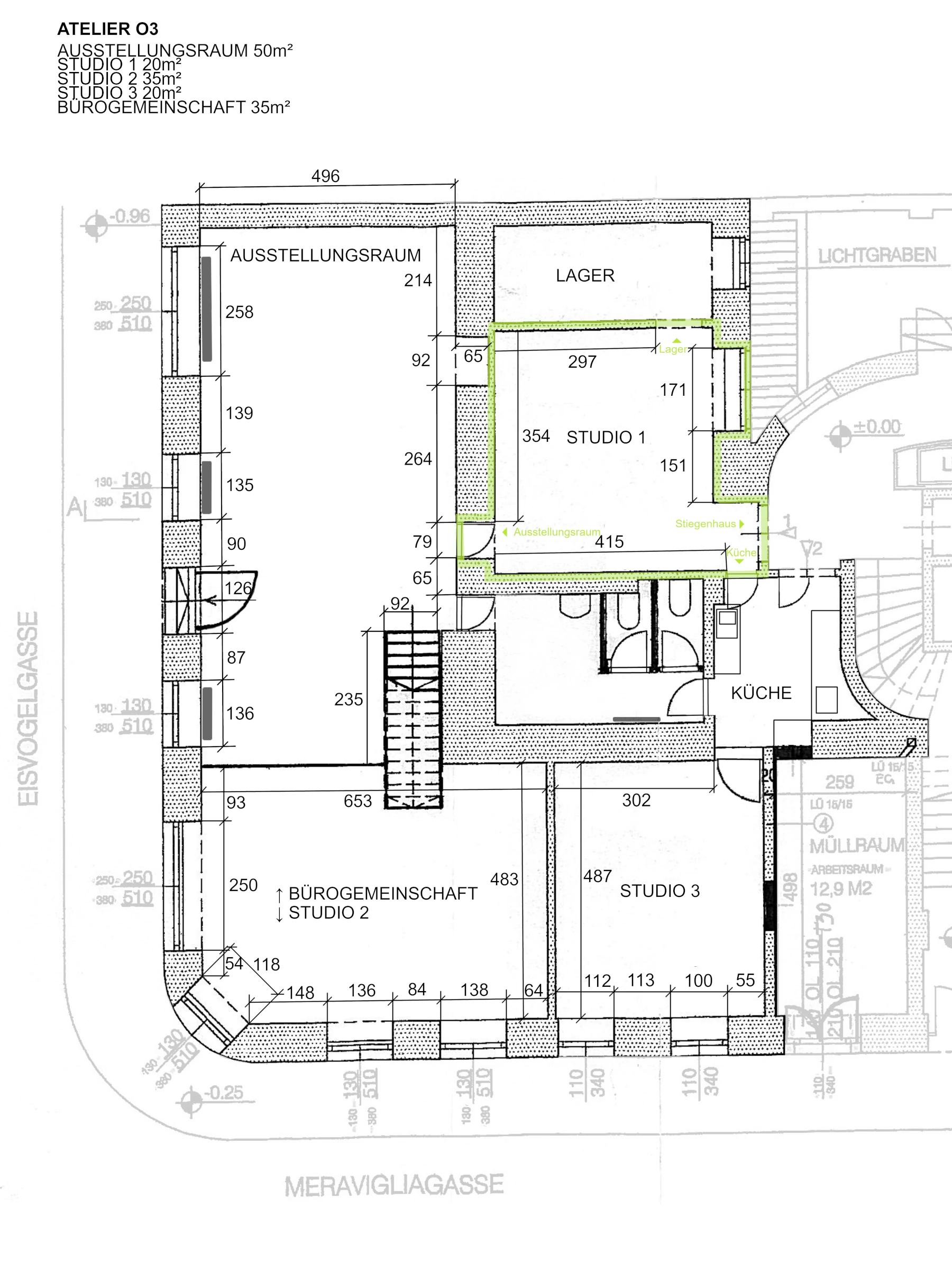 - Raum im Atelier O3, ein stetig wachsender kreativer Knotenpunkt in frischer Entwicklung