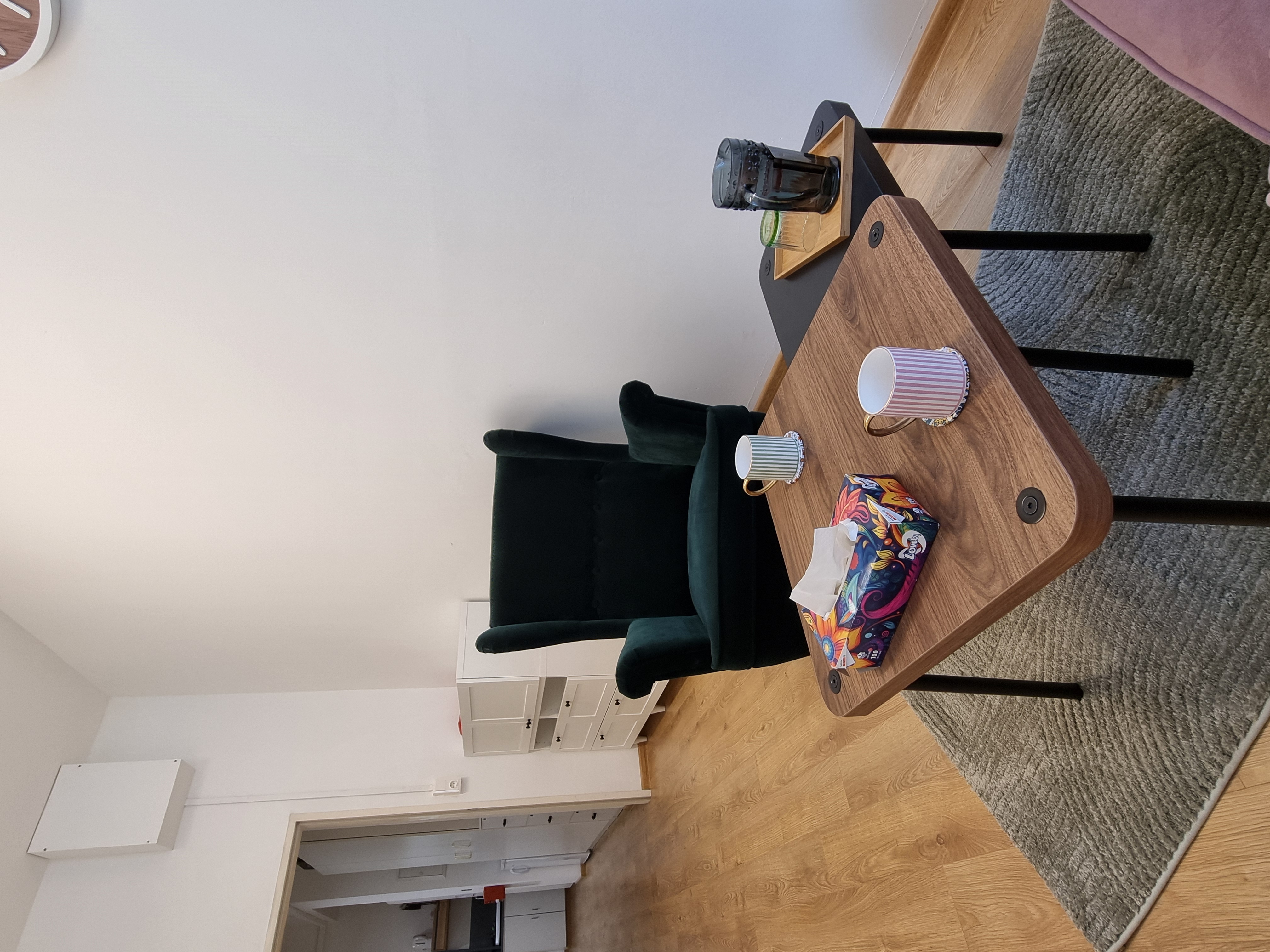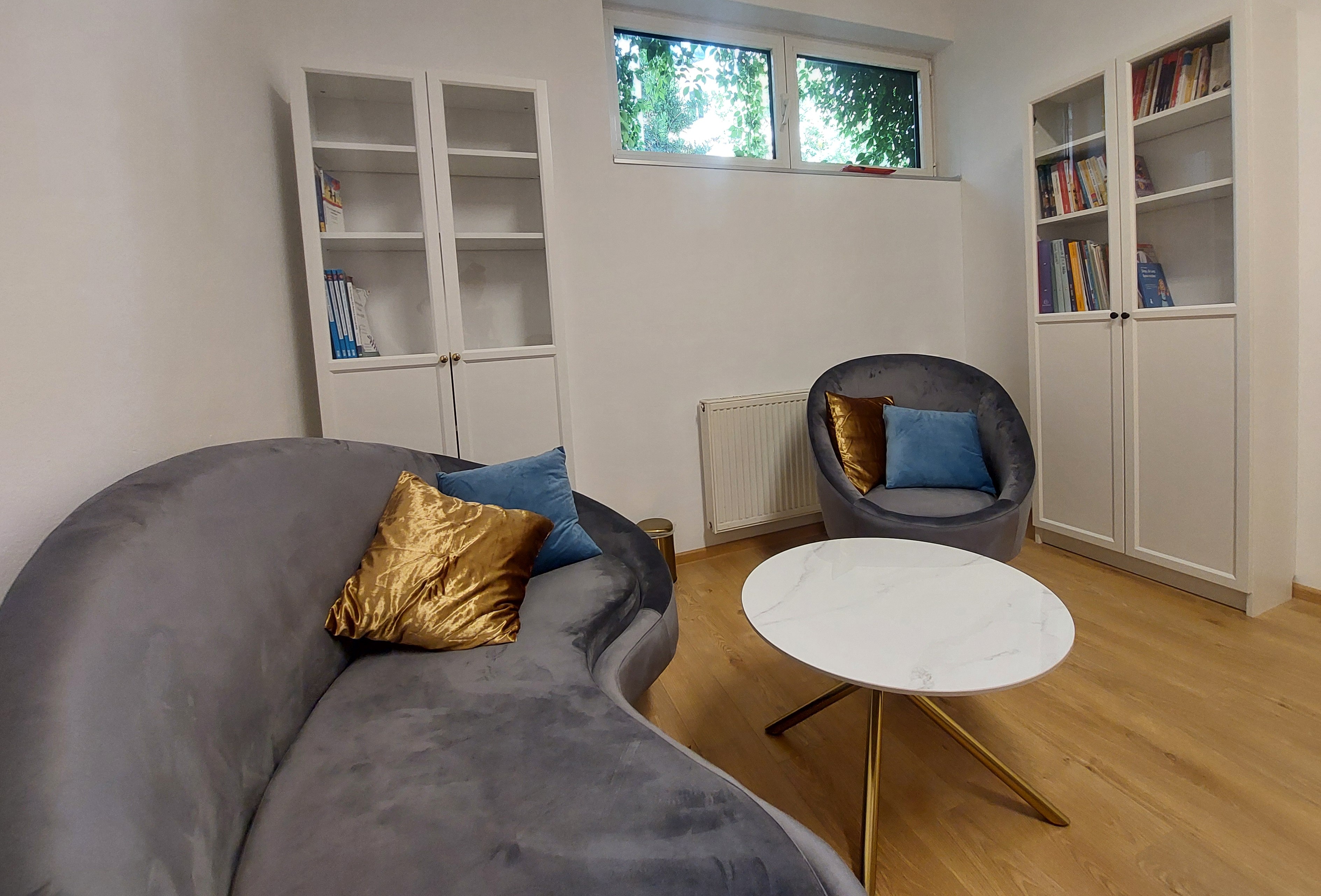 Unser Zentrum umfasst vier individuell gestaltete Räume mit insgesamt 80 m²– inklusive Wartebereich, kleinen Teeküche, Druckmöglichkeiten und Stauraum für Materialien. Wir dürfen sogar einen kleinen Garten mitbenützen, in dem es sich gut entspannen und Kaffee trinken lässt (Unter Kolleg*innen, nicht mit Klient*innen).