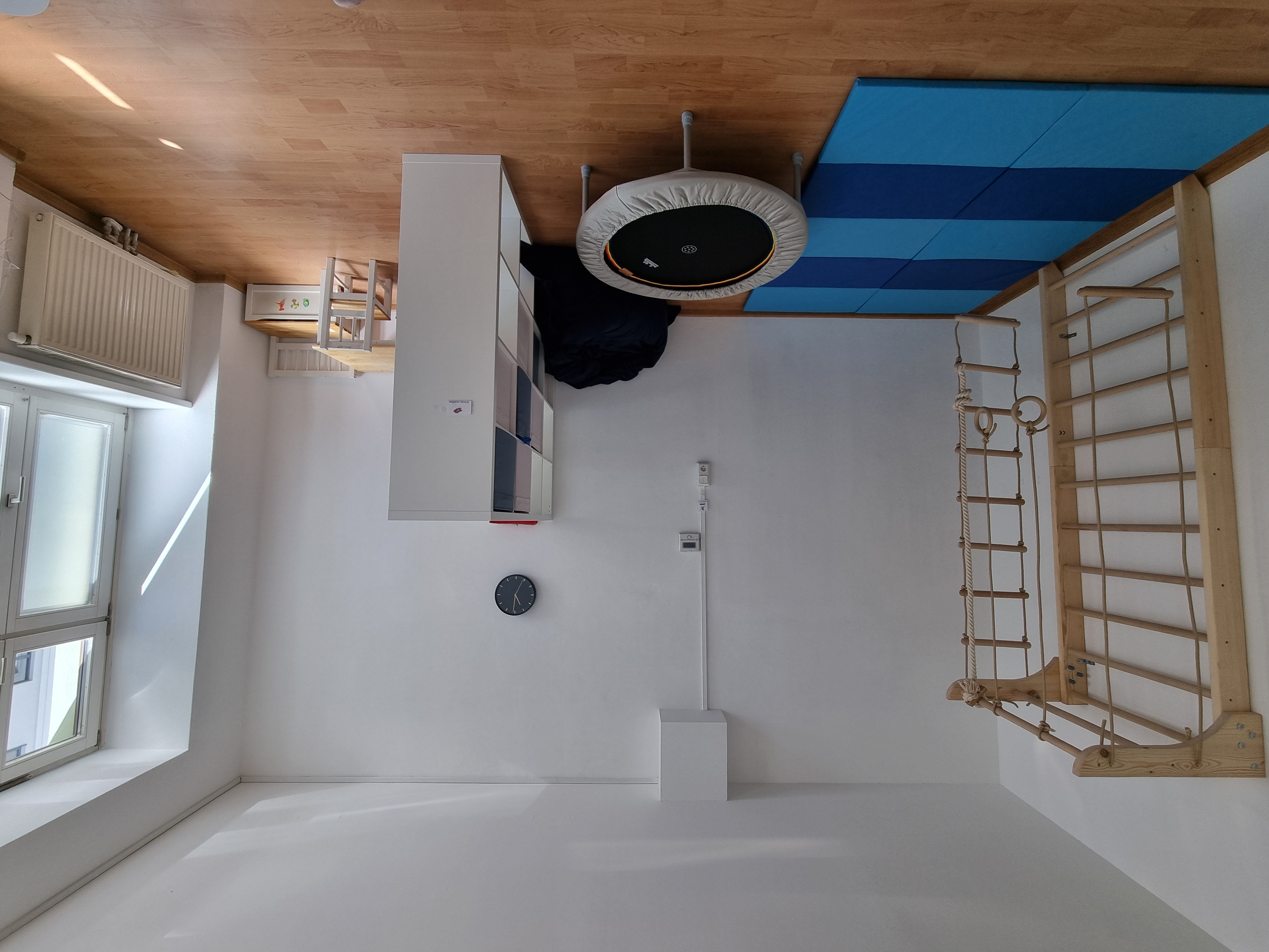 Ein ruhiger Raum mit vielfältiger Nutzungsmöglichkeit – besonders geeignet für Menschen, denen ein klassischer Bewegungsraum zu reizintensiv ist. Vielseitig gestaltbar für Kinder, Jugendliche und Erwachsene.
