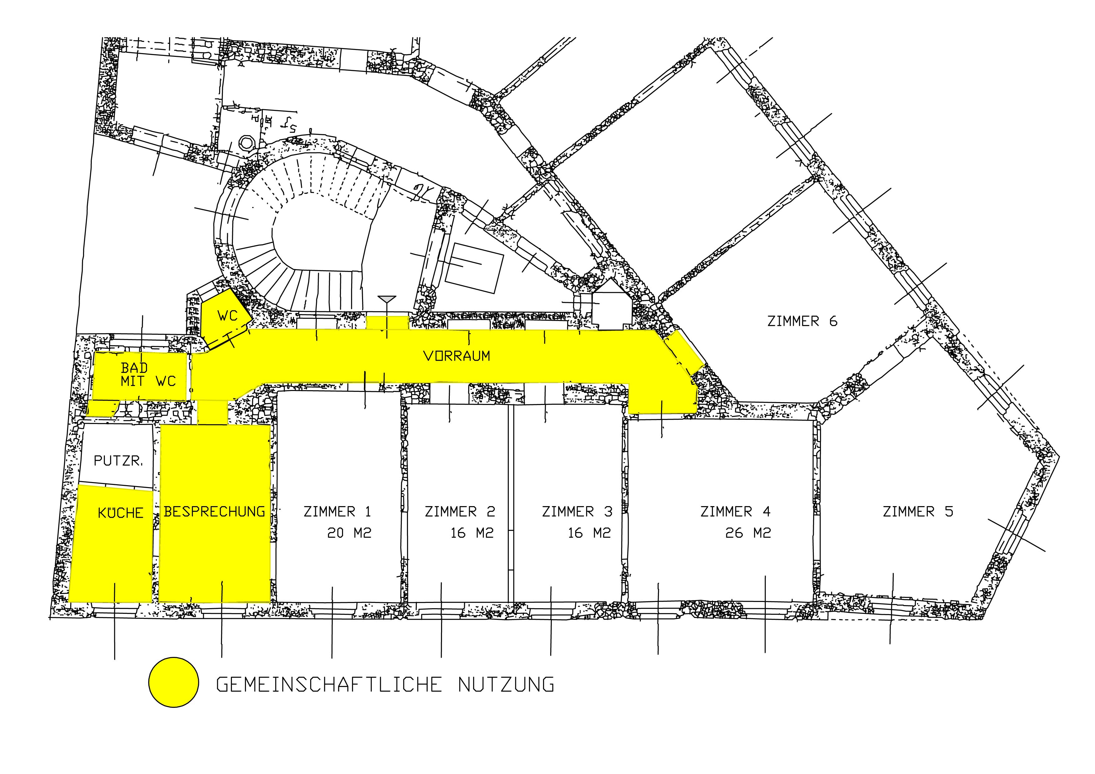 Nutzung aller Allgemeinräume (im Grundriss gelb dargestellt) ist inkludiert