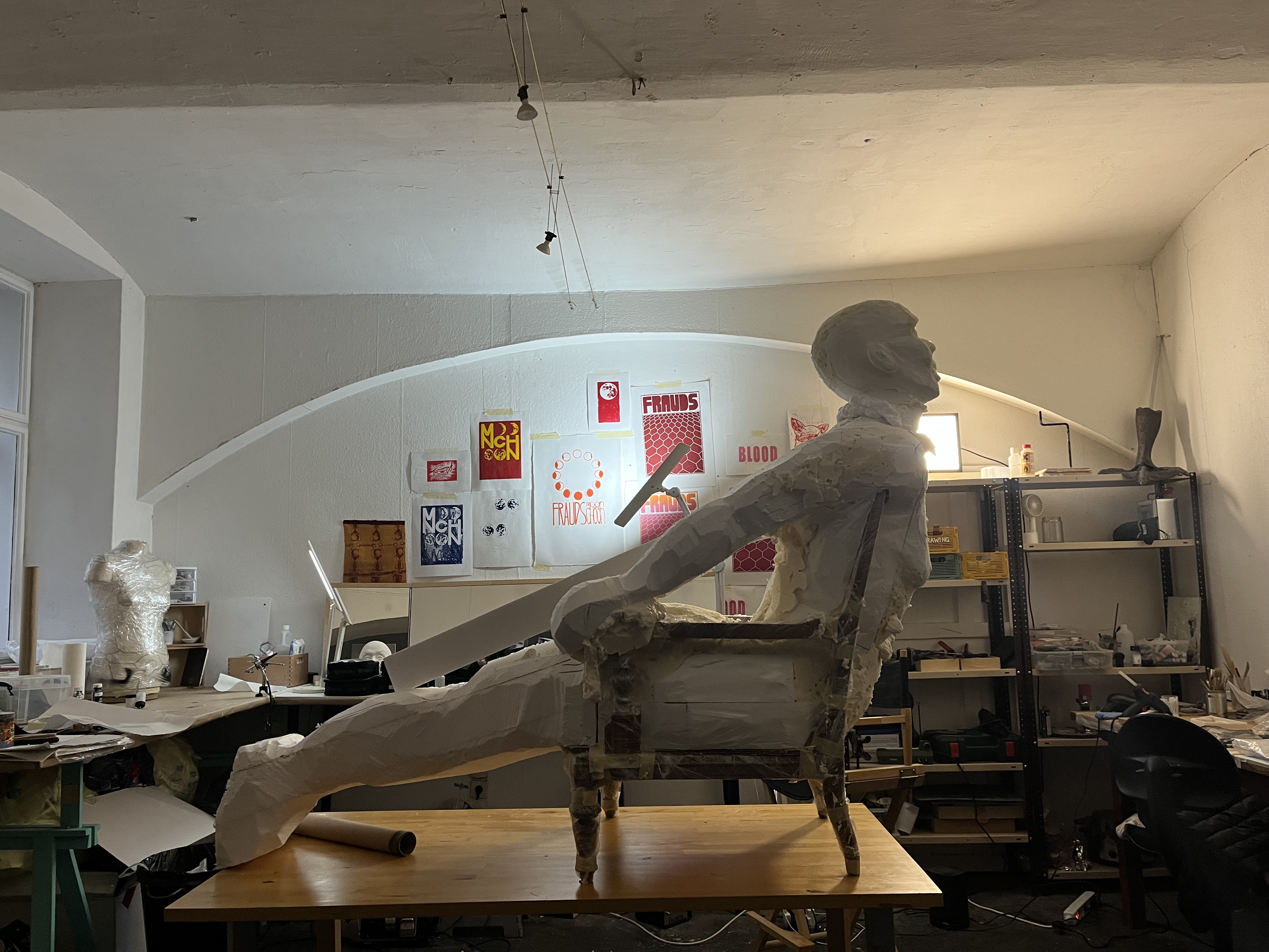 Ich mache mixed-media Skulpturen, verwende also unter anderem 3d Drucker, Modelliermassen, Styropor, Silikon, Nähmaschinen, Airbrush, Ölfarben und und und…