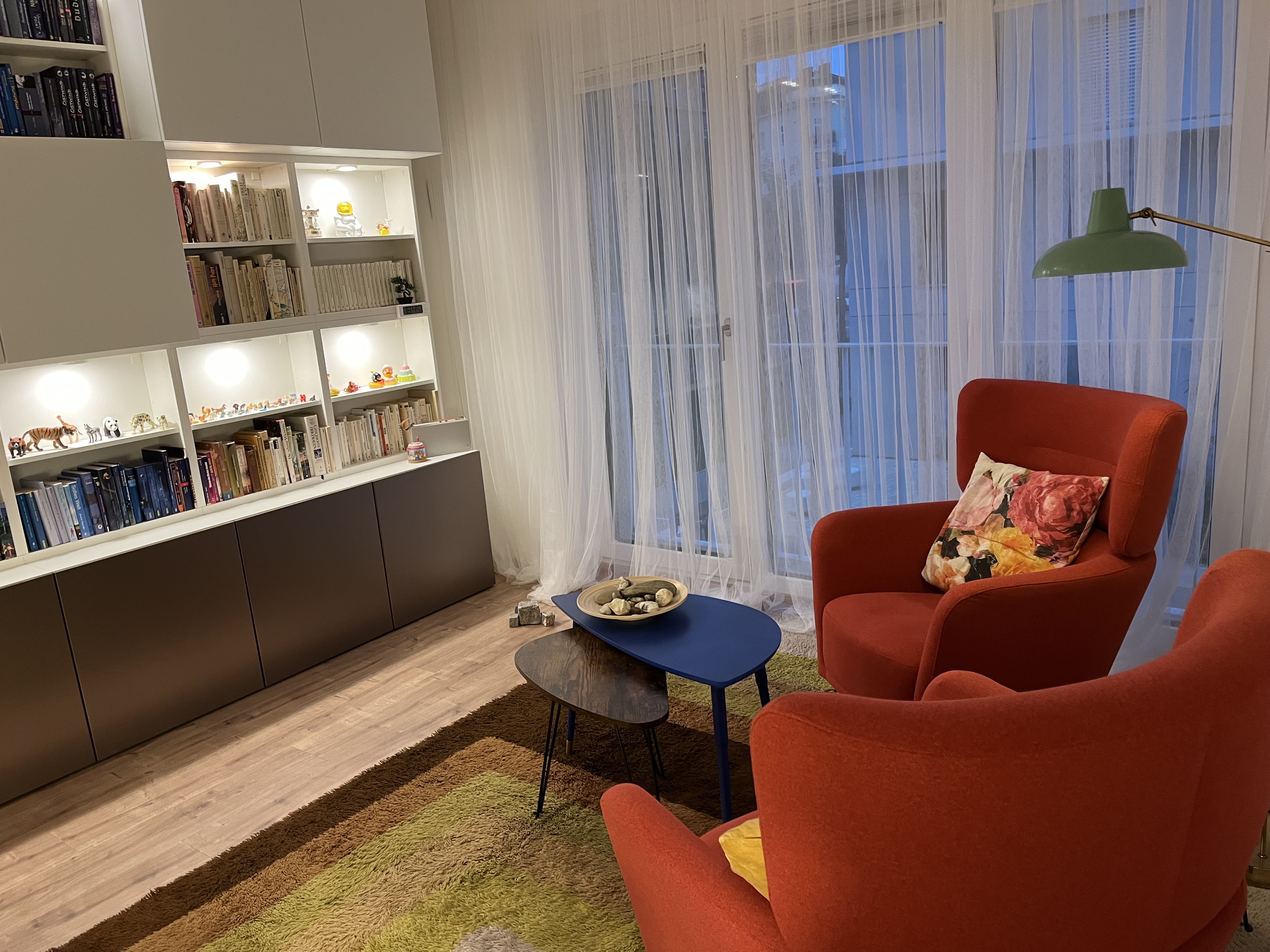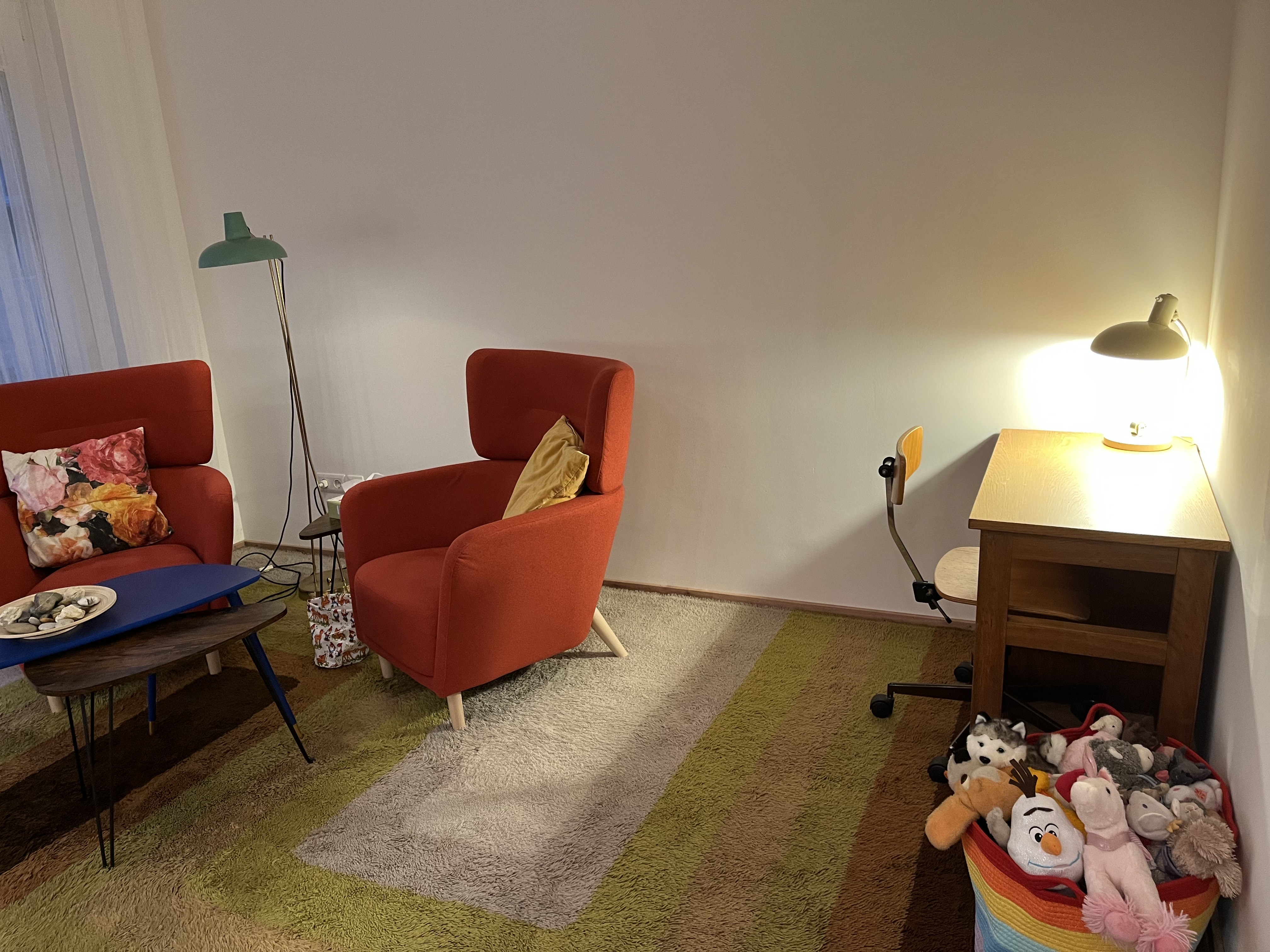 Der Raum ist hell und bietet ausreichend Platz für Einzelsetting, wie auch Paarsitzungen. Der Raum ist für Therapie, Diagnostik, Beratung, sowie Coaching ausgestattet.