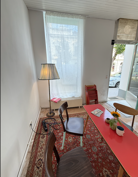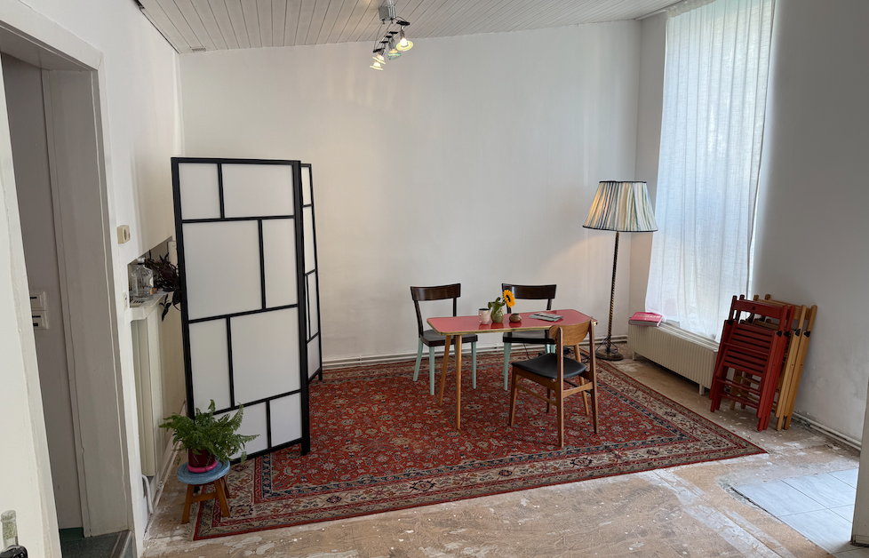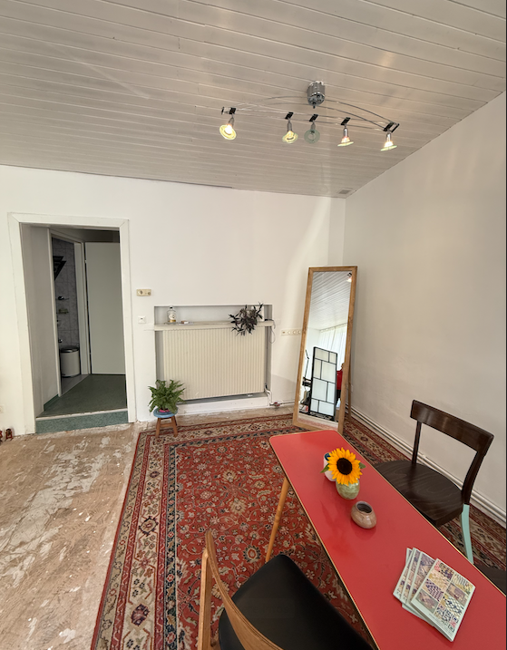 Der Raum steckt in seinen Kinderschuhen und ich freu mich ihn gemeinsam zu gestalten. Dein Bereich (die rechte Seite des Raumes um 450€) kann ganz individuell gestaltet werden. (Gerade wird er von einer Gesprächsgruppe genutzt)