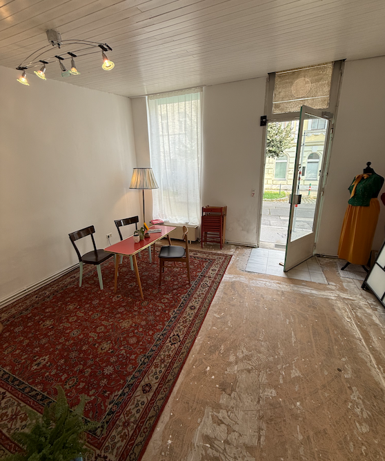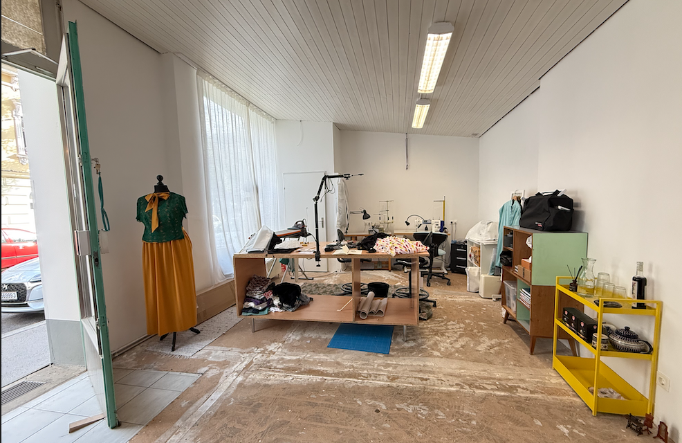 Das schöne Erdgeschosslokal mit großen Auslagen habe ich vor 1 Jahr gemietet und ich arbeite dort selbst als Maßschneiderin. Es lässt noch viel Raum zur Entwicklung, Zusammenkunft Kreativer, Workshops oder einem ruhigen Arbeitsplatz..