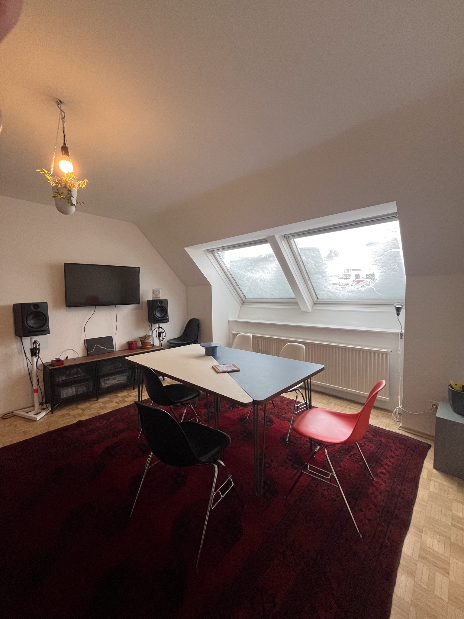Hinweis: Dachgeschoss = im Sommer warm – wir können super durchlüften und haben Ventilatoren, sowie einfache Maßnahmen gegen Hitze, aber es bleibt ein echtes Dachgeschoss.