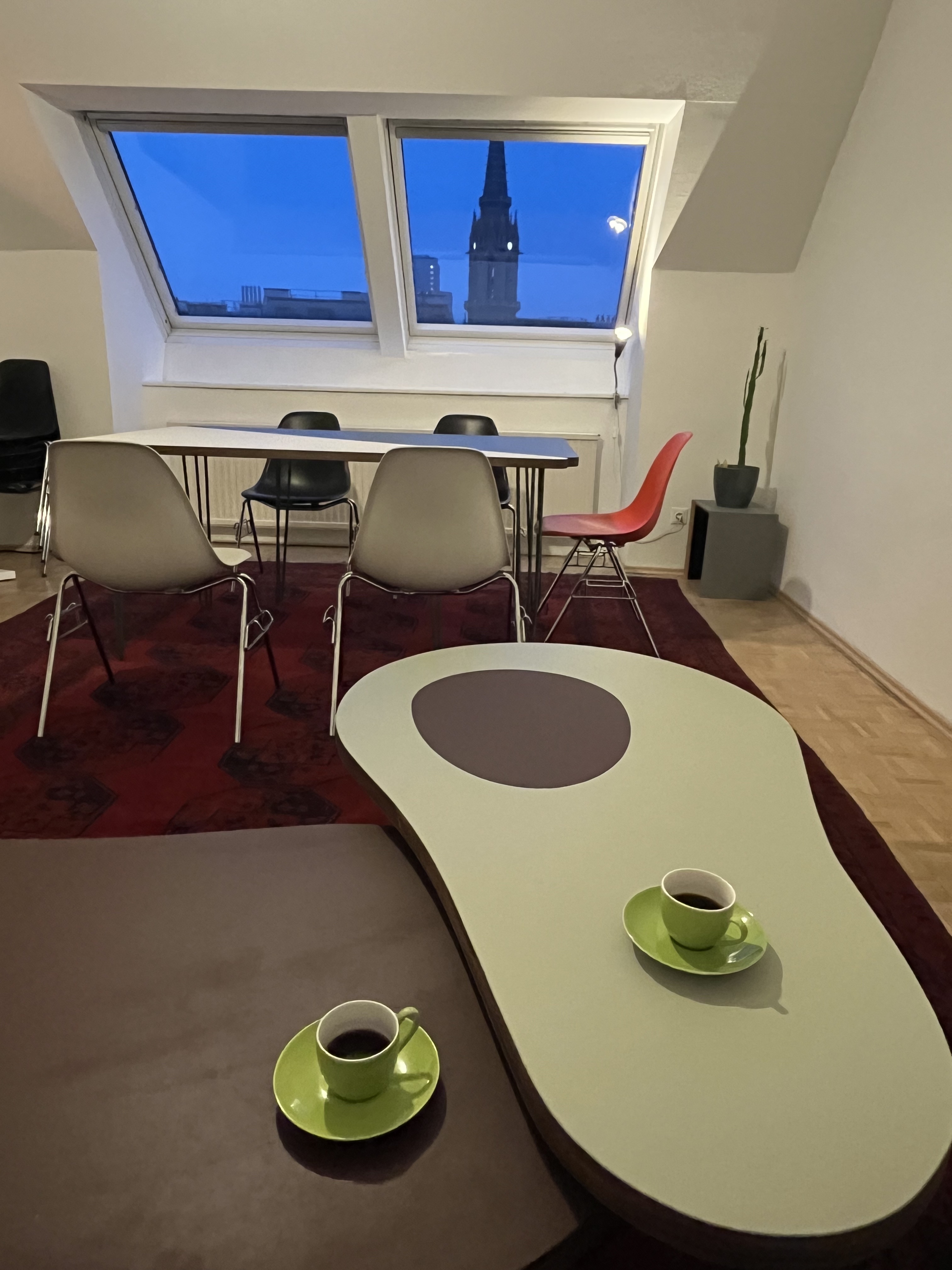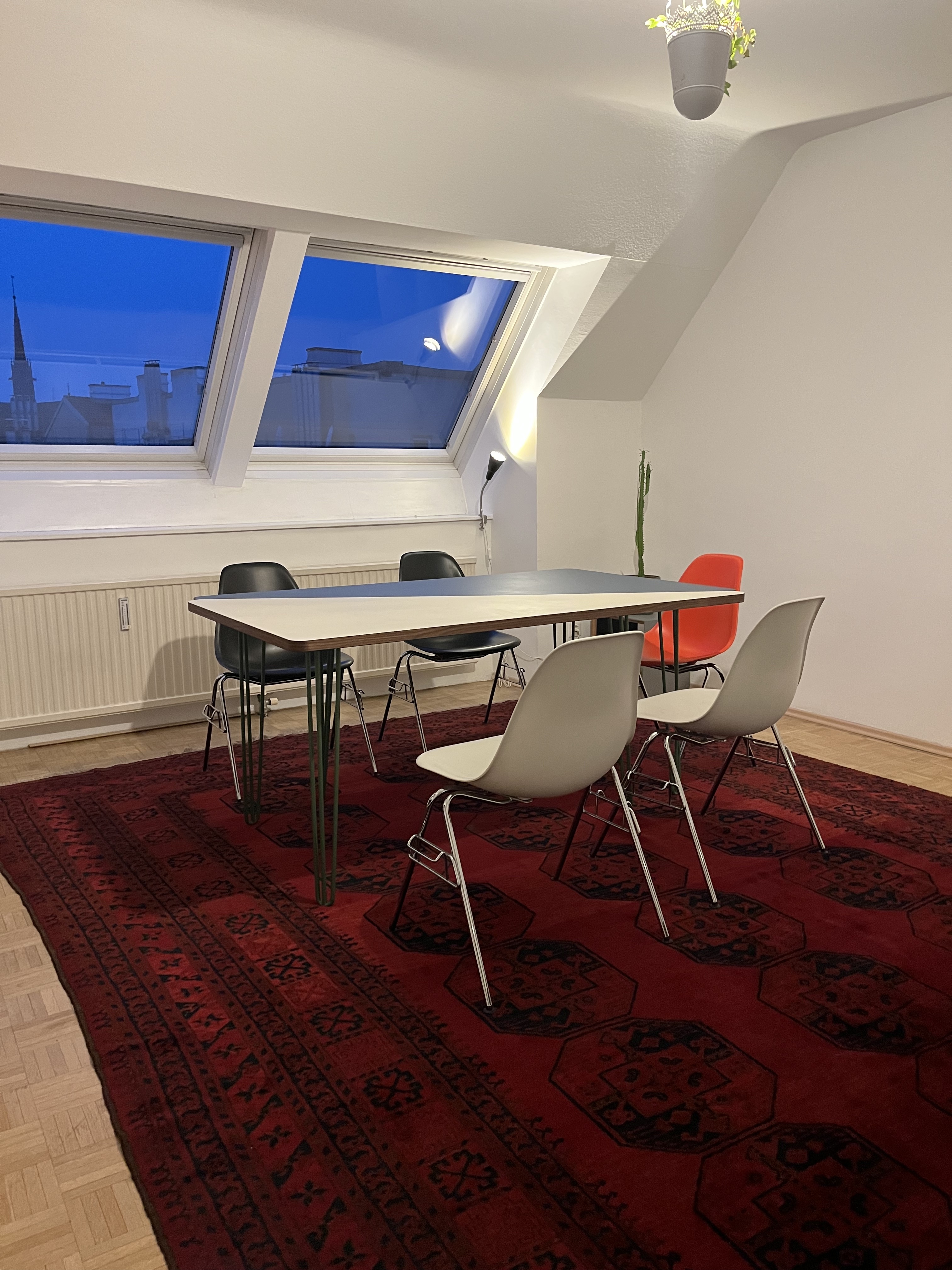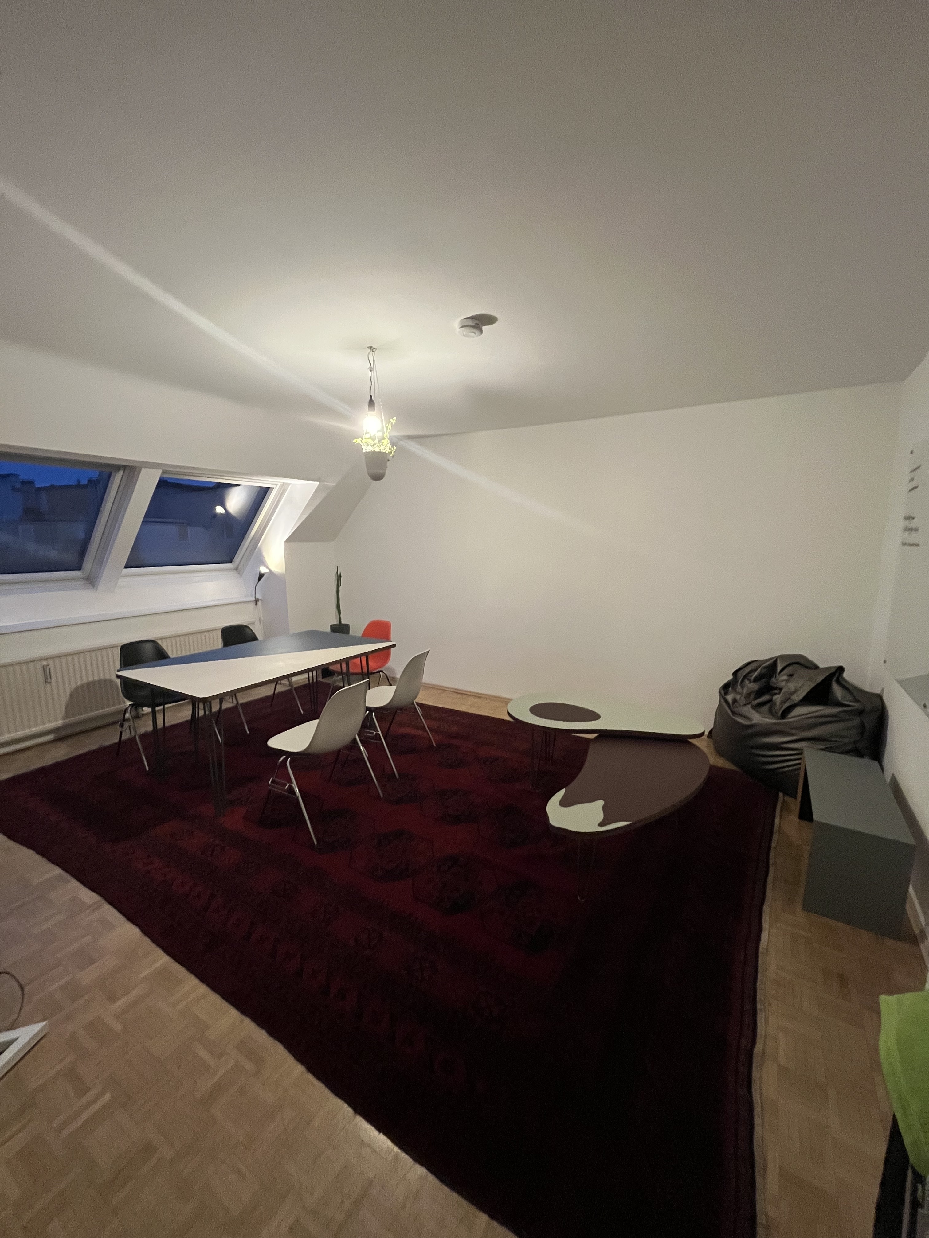 Unser Dachsgeschoss ist für Kreativ- und Kunstarbeitende, die großteils ihre Produktionen eher extern machen und eine Homebase/Office/Meeting Raum suchen und einen Ort, an welchem, Ideen und Synergien entstehen können.