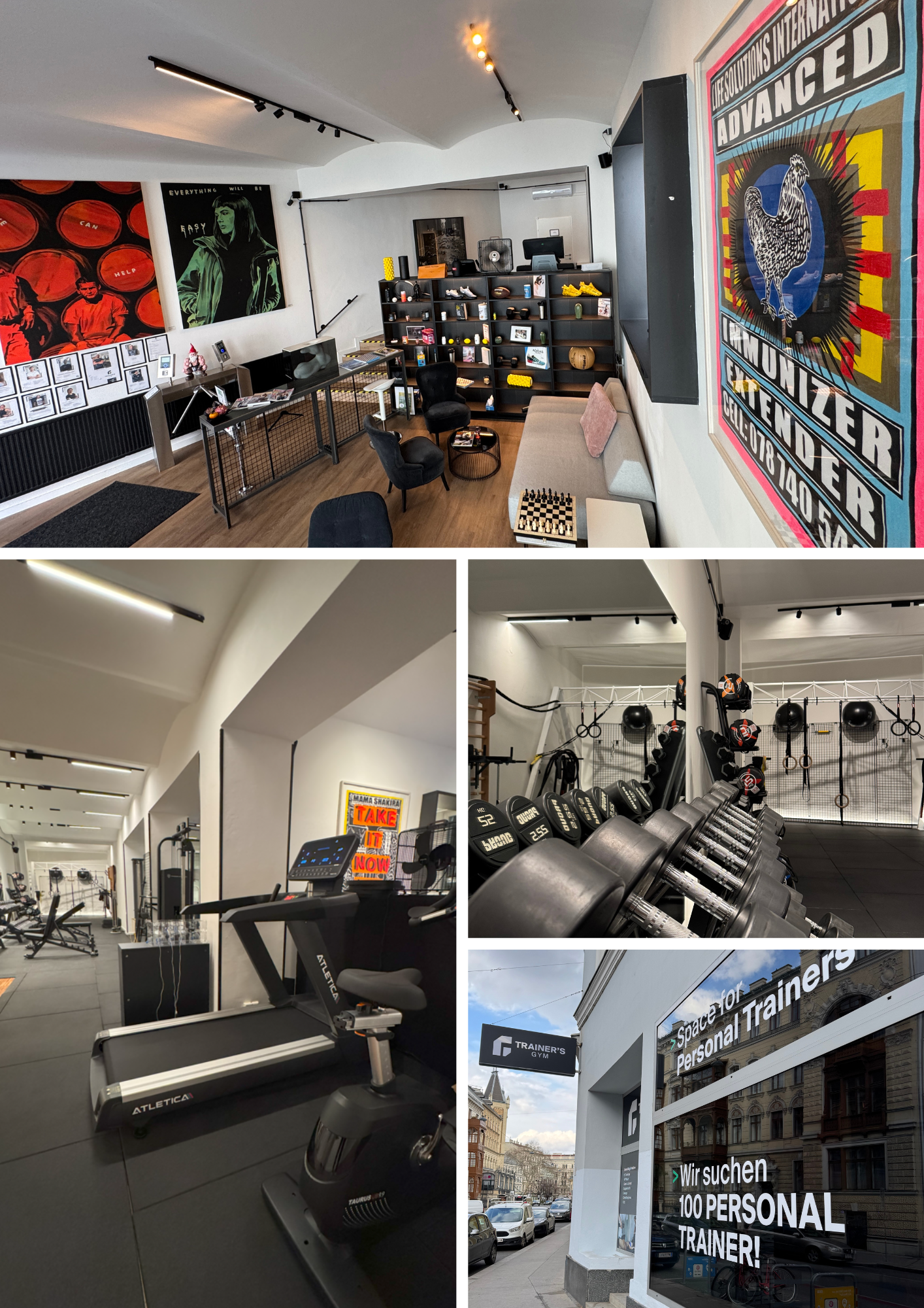 17€ Tageseintritt? Ja ! Willkommen im Trainer’s Gym, einem exklusiven Studio in der Margaretenstraße 87 . Mit einzigartigem Design, voller Kunst, funktionaler Einrichtung und einer inspirierenden Atmosphäre hebt sich unser Studio bewusst von herkömmlichen Fitnessstudios ab. Unser Fokus liegt auf Qualität, Individualität und Innovation: Auf 240m² 4 Racks, T-Bar Row Maschine, Adduktor- und Abduktormaschine, Beinbeuger- und Beinstreckermaschine, Kurzhanteln 1-50kg, 3 Kabelzüge, 2 Cable Cross, Ringe, TRX, Kettlebells, Sandbags und vieles mehr...
