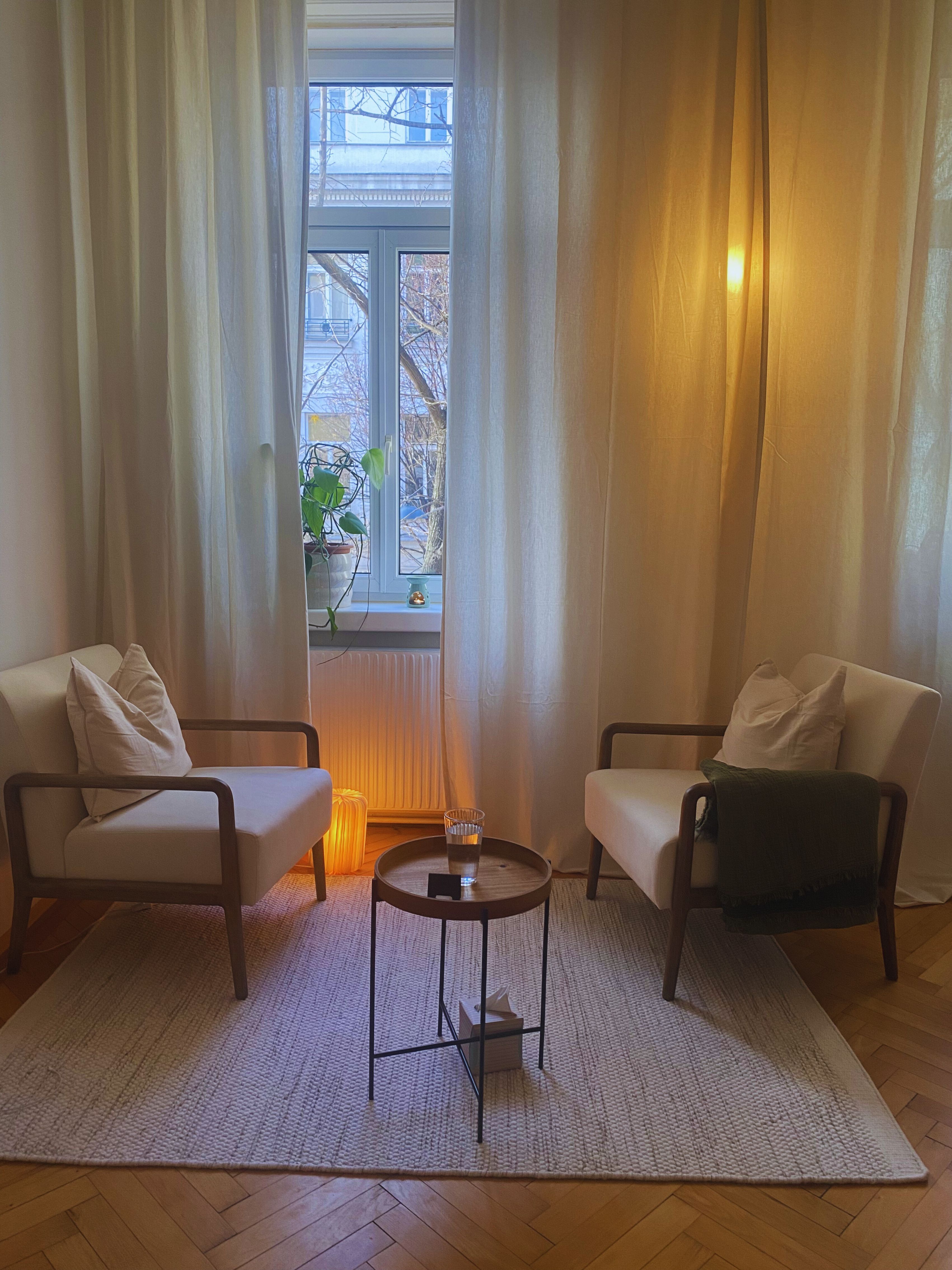 Ein ruhiger Raum für Gesprächssettings, z.B. Beratung, Coaching oder Supervision.