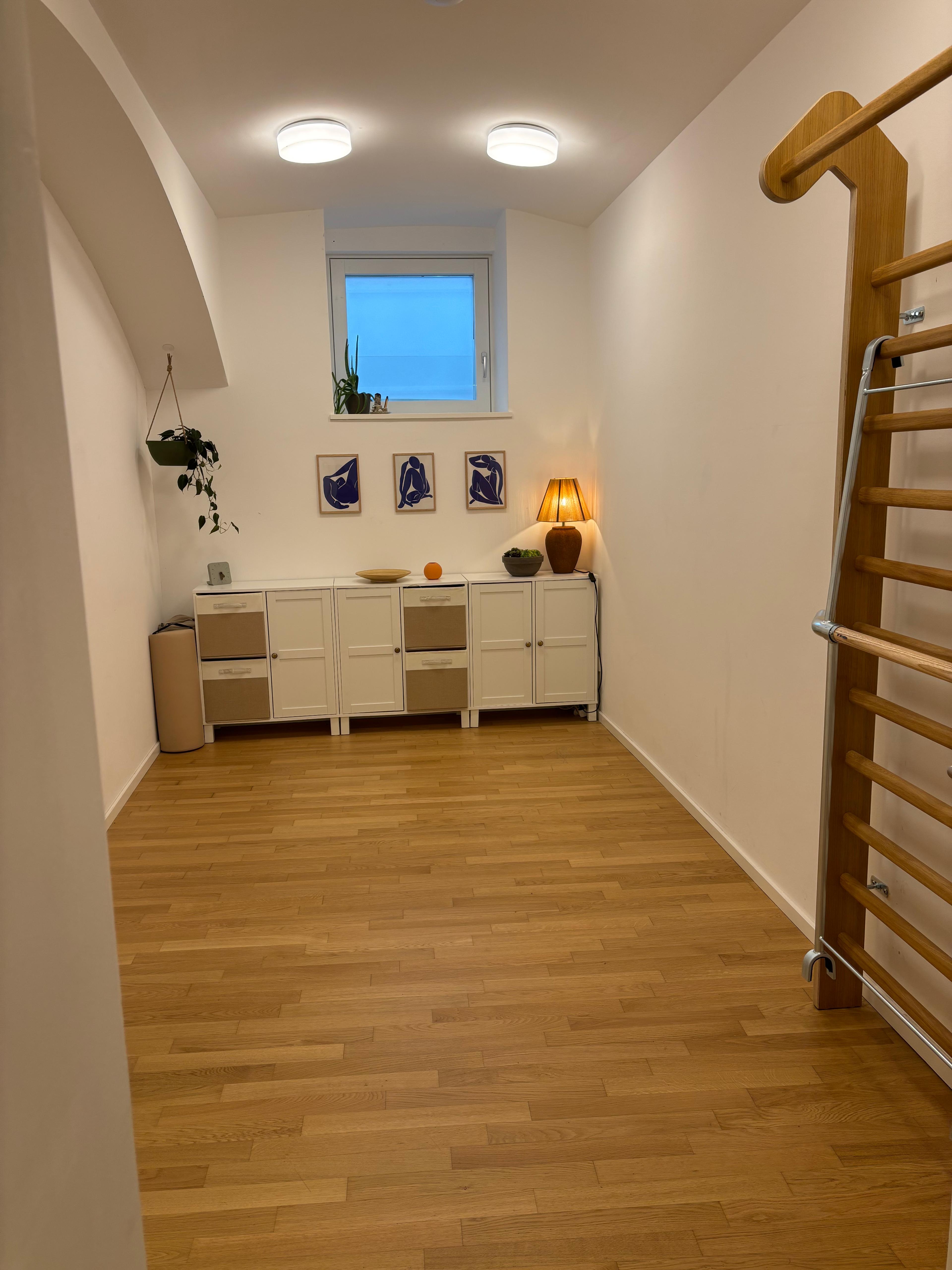 Unser liebevoll gestaltetes Yoga-Studio für Frauen, Mütter, Schwangere und Kinder vermietet einen 12 m² großen, warmen Behandlungsraum – ideal für Körperarbeit, Shiatsu, Massage, Reiki u.a.