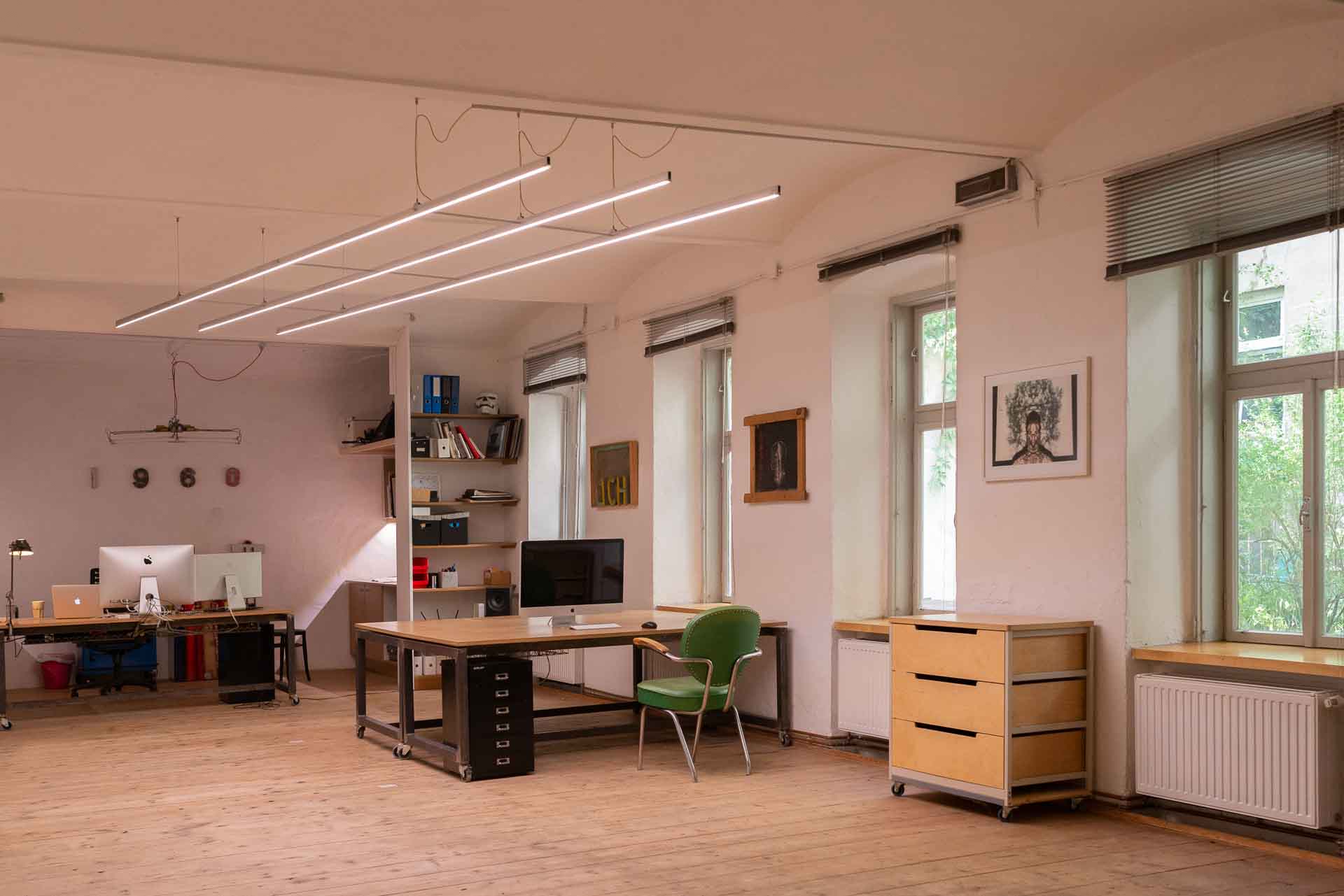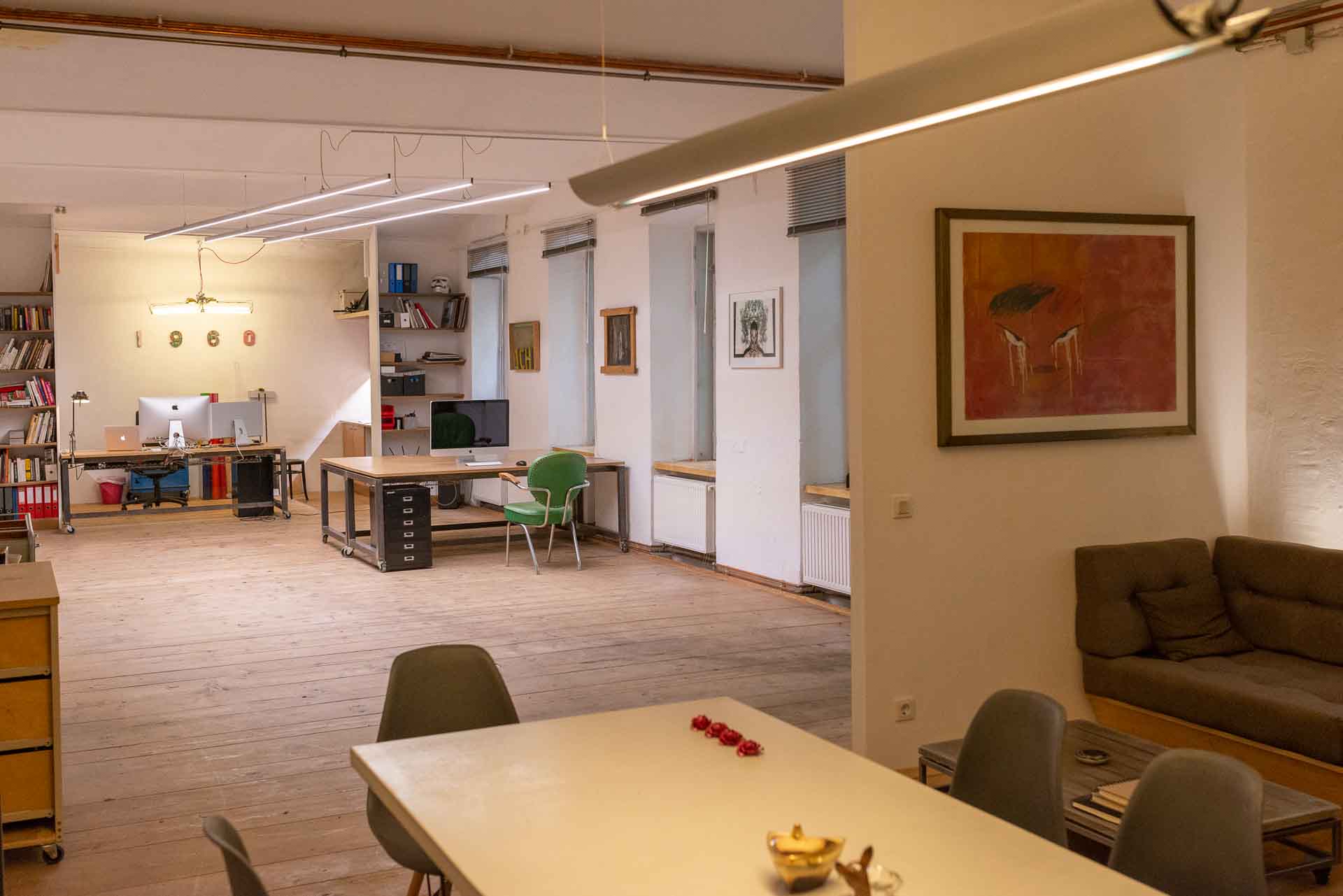 Du hast Lust hier im Atelier zu arbeiten? Ab sofort gibt’s in meinem 120 m² großen Atelier – einem umgebauten Fuhrwerkerstall im ruhigen Hinterhof – einen freien Coworking-Platz für kreative Selbstständige. Platz für vier, zentral gelegen und öffentlich gut erreichbar. Ich freu mich auf dich!